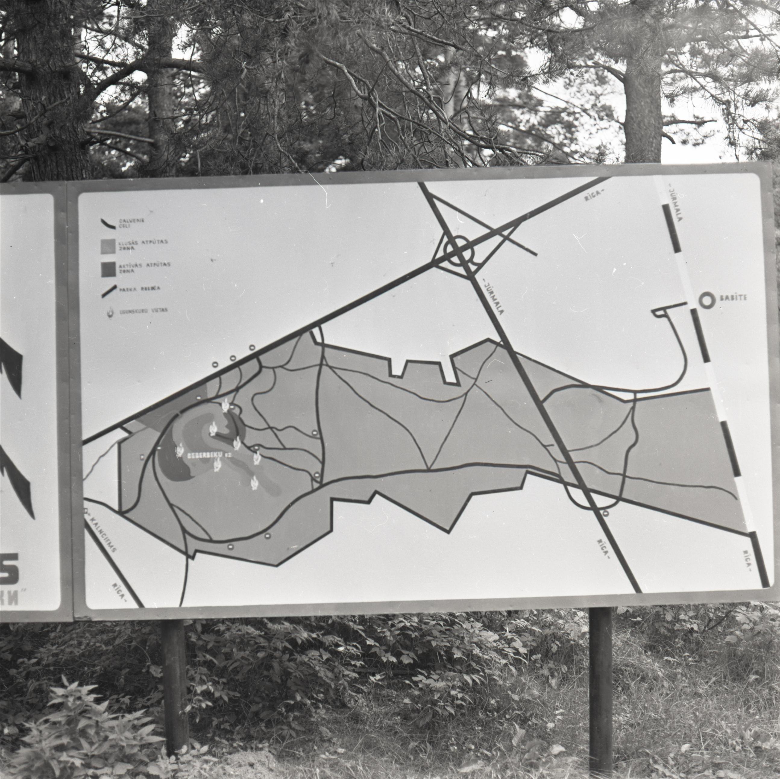 Beberbeķu dabas parks: Stends ar dabas parka plānu. Fonā koki.