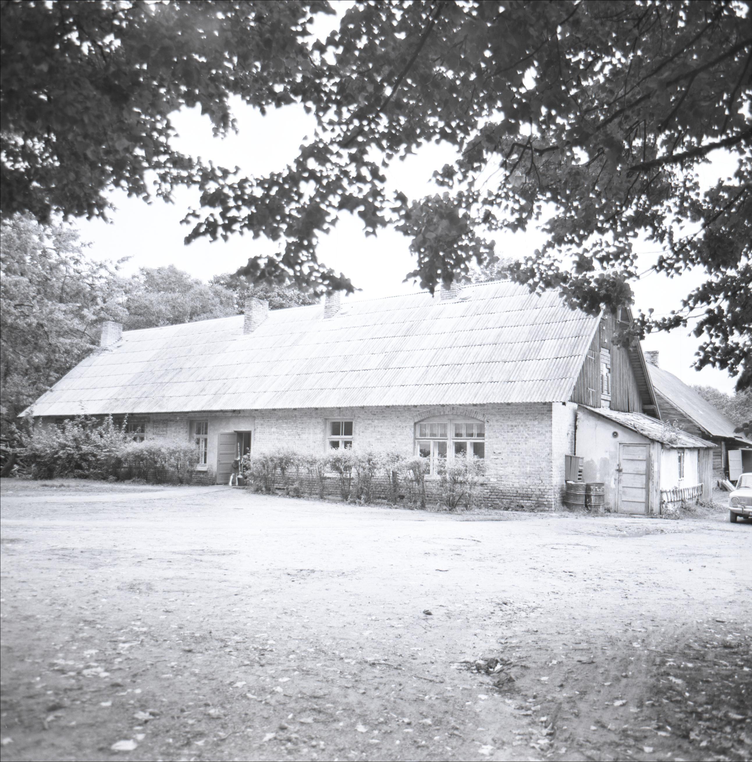Piņķu mācītājmuiža: Stallis. Vienstāvu ķieģeļu ēka ar divslīpju jumtu. Pie sānu fasādes neliela piebūve. Gar fasādi krūmu apstādījumi. Attēla labajā pusē fonā redzama darbinieku ēka.