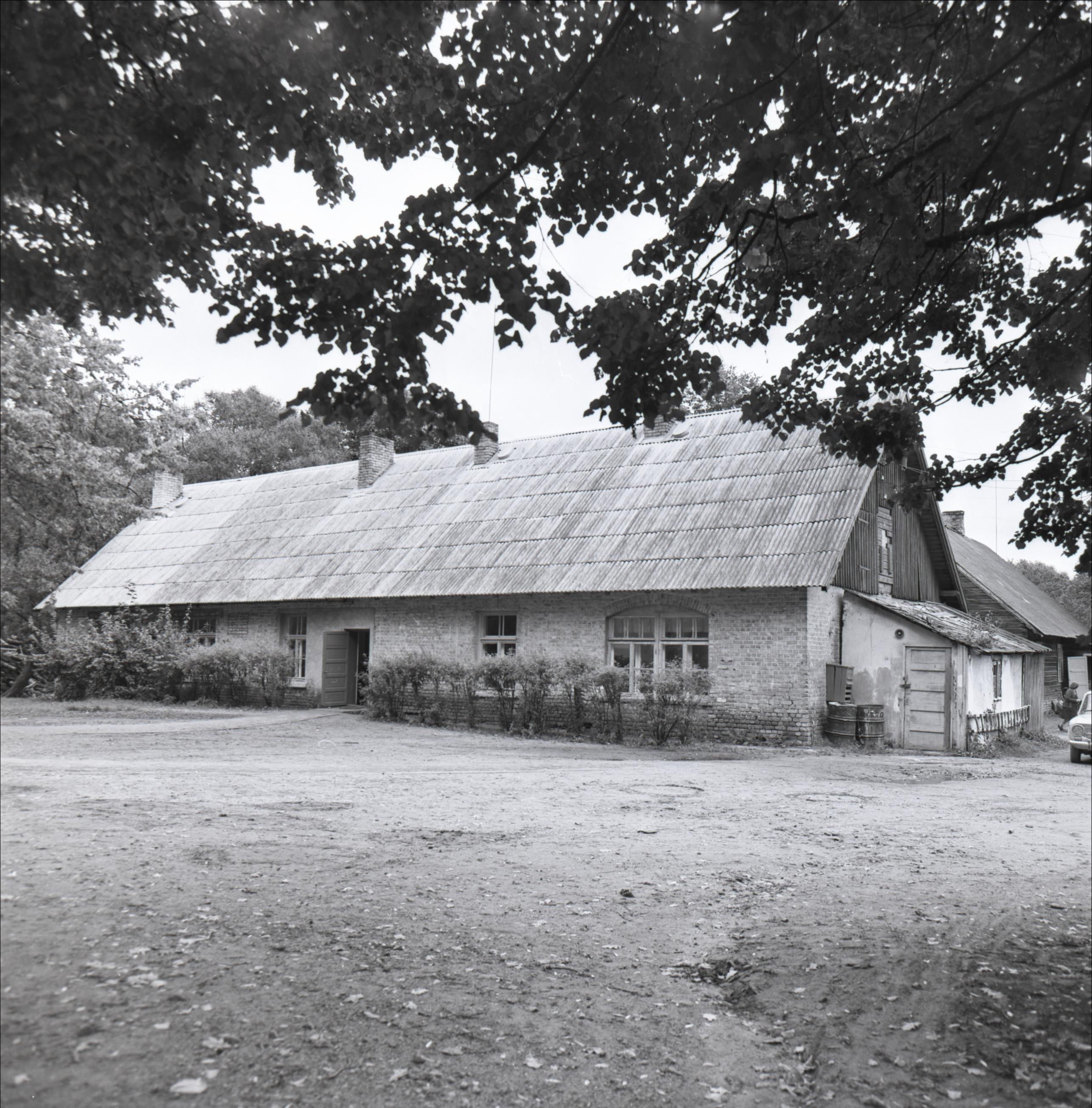 Piņķu mācītājmuiža: Stallis. Vienstāvu ķieģeļu ēka ar divslīpju jumtu. Pie sānu fasādes neliela piebūve. Gar fasādi krūmu apstādījumi. Attēla labajā pusē fonā redzama darbinieku ēka.