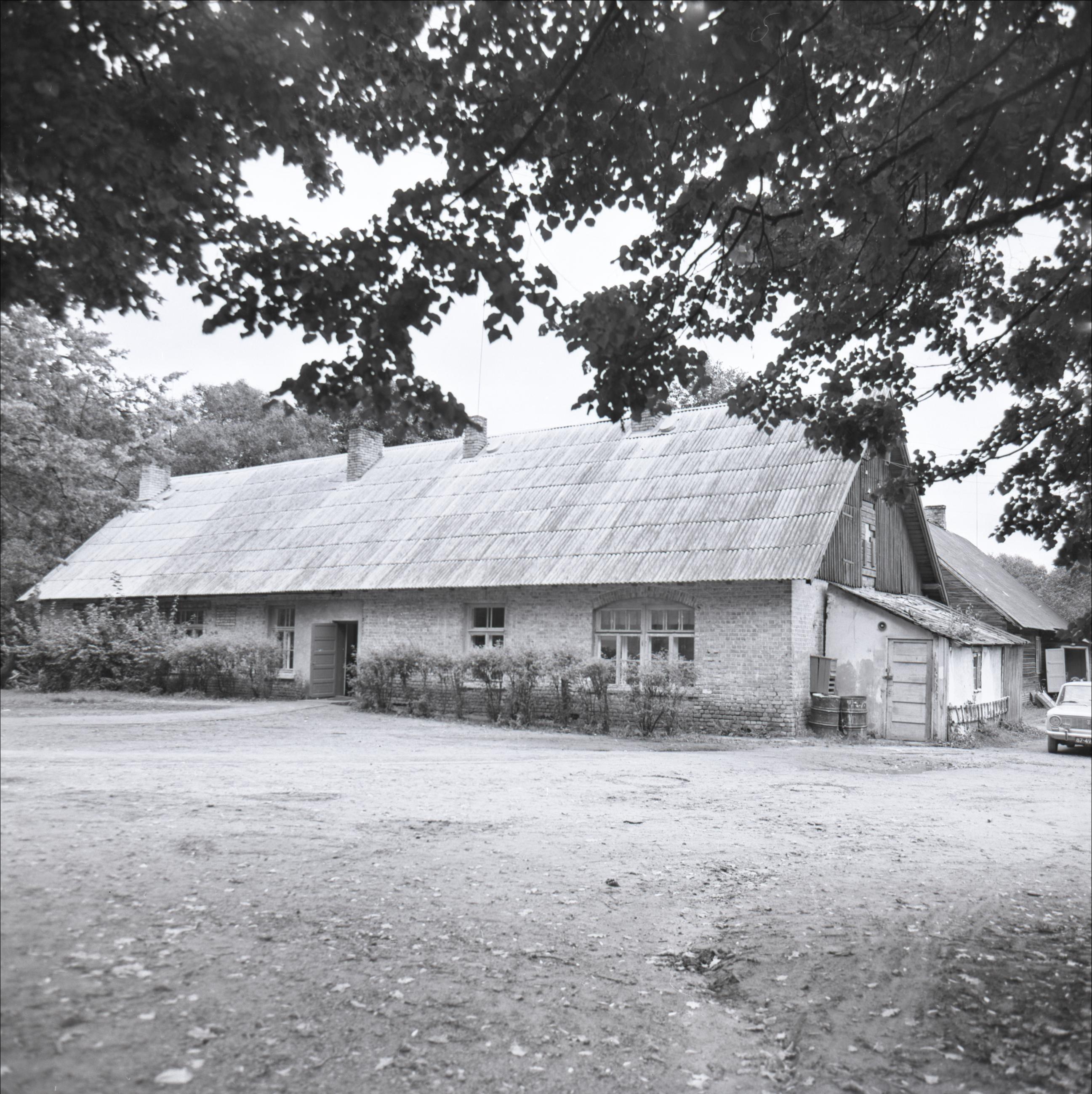 Piņķu mācītājmuiža: Stallis. Vienstāvu ķieģeļu ēka ar divslīpju jumtu. Pie sānu fasādes neliela piebūve. Gar fasādi krūmu apstādījumi. Attēla labajā pusē fonā redzama darbinieku ēka.