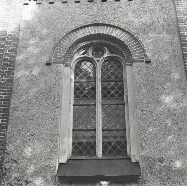 Salas Sv. Jāņa luterāņu baznīca: Sānu fasādes logs. Logs pusaploces arkas formā. Logiem sīks rūtojums, augšējā daļā rūtojums veido sešstaru zvaigzni.