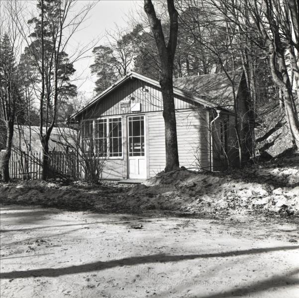 Ēka: Dzejnieku Raiņa un Aspazijas vasarnīca. Skats uz ēku no Salacas ielas puses uz ēkas ieejas fasādi. Virs ieejas redzama piemiņas plāksne. Fonā pakalns ar kokiem.