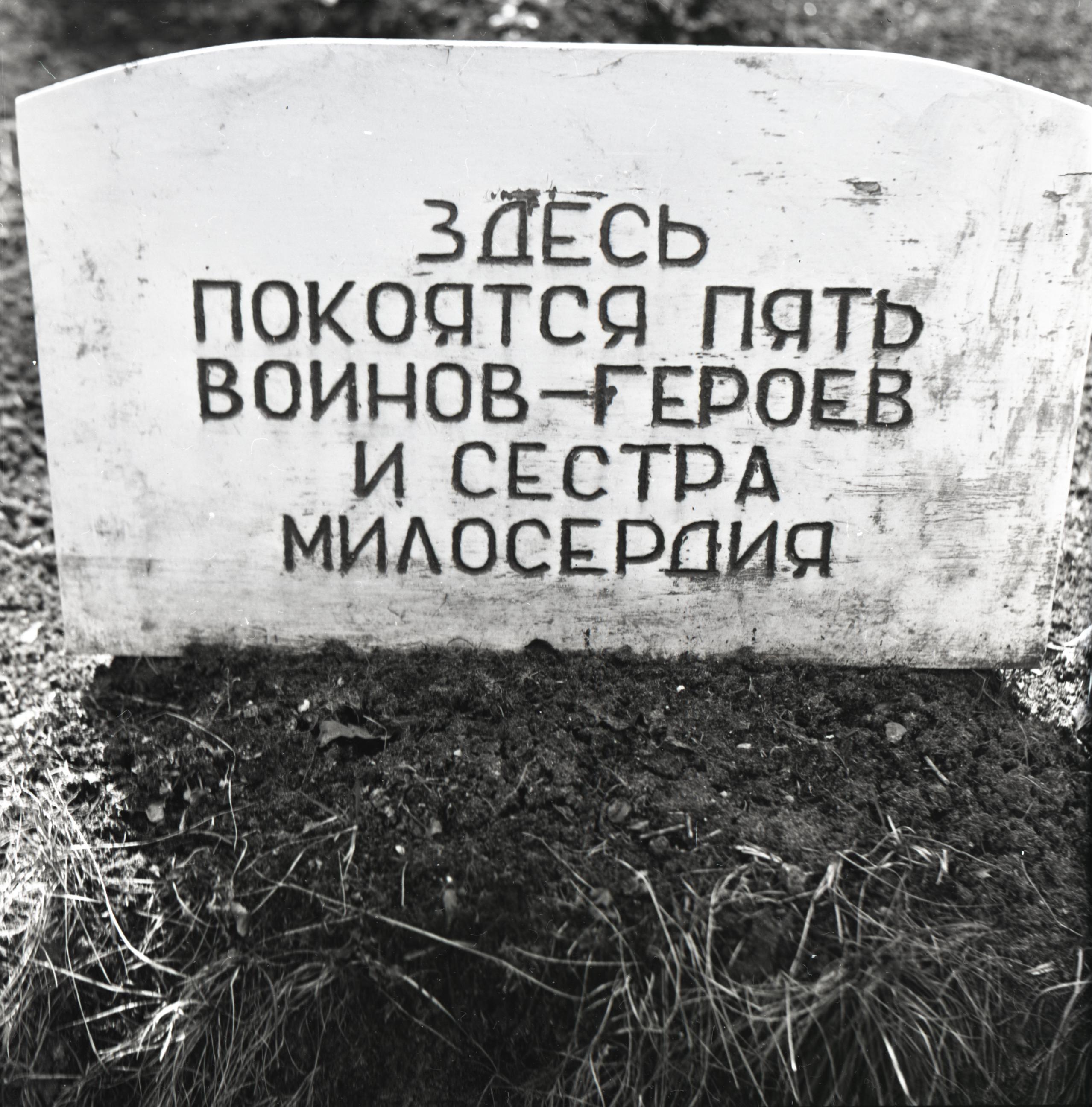 1. pasaules kara kapi Ķemeru parkā: 1. pasaules kara kapi pie Ķemeru pareizticīgo baznīcas Ķemeru parkā. 5 karavīru kapi. Kapa plāksnes tuvplāns, plāksne balta ar uzrakstu krievu valodā.