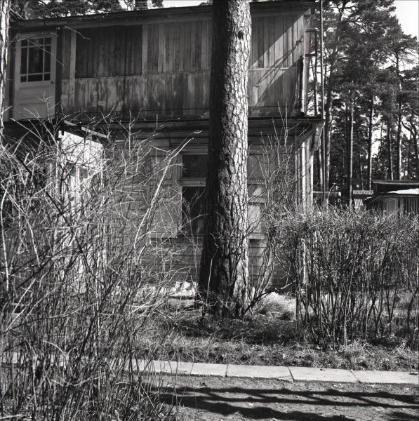 Ēka: Ēka, kurā dzīvoja Antons Birkerts un Pēteris Birkerts. Skats uz sānu fasādi. Skatu uz ēku daļēji aizsedz koks un krūmi. Fonā redzamas itas ēka un šķūnīši.