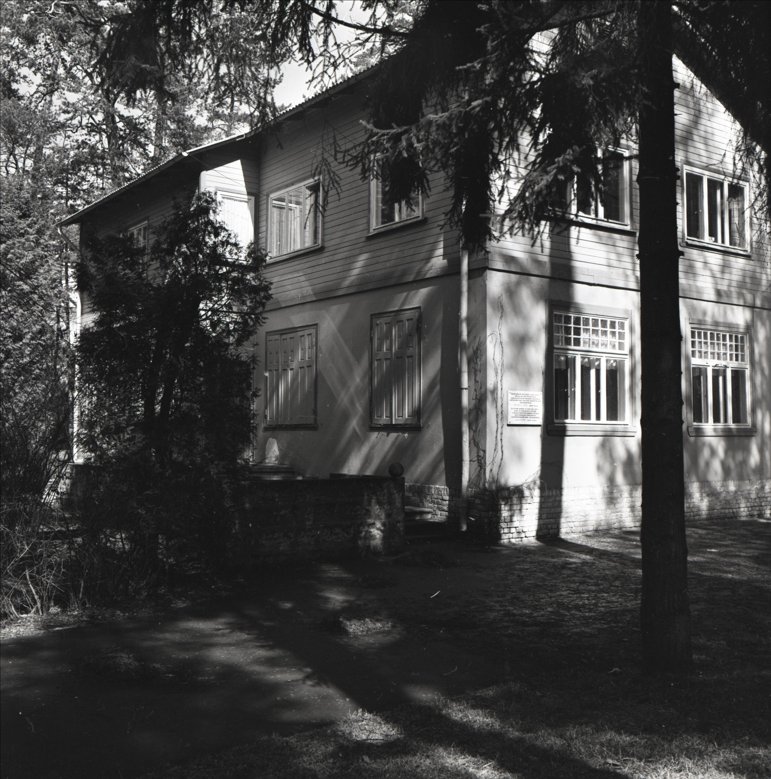 Ēka: Ēka, kurā dzīvoja rakstnieks Andrejs Upīts. Divstāvu ēka,otrais stāvs ar koka apdari. Pie fasādes redzama piemiņas plāksne. Fonā koki.