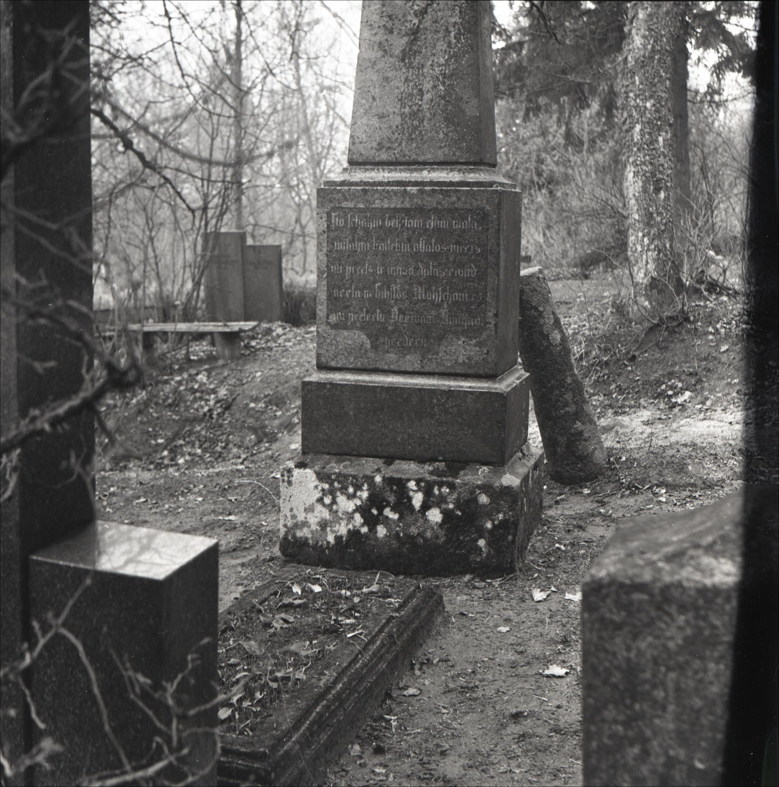 Madlienas kapi: 1905. gada revolucionāra K. Kalniņa kaps. Kapa vietas tuvplāns. Kapa vieta ar betonētu apmali. Pie kapa piemineklis obeliska formā, tā apakšdaļā uzraksts.