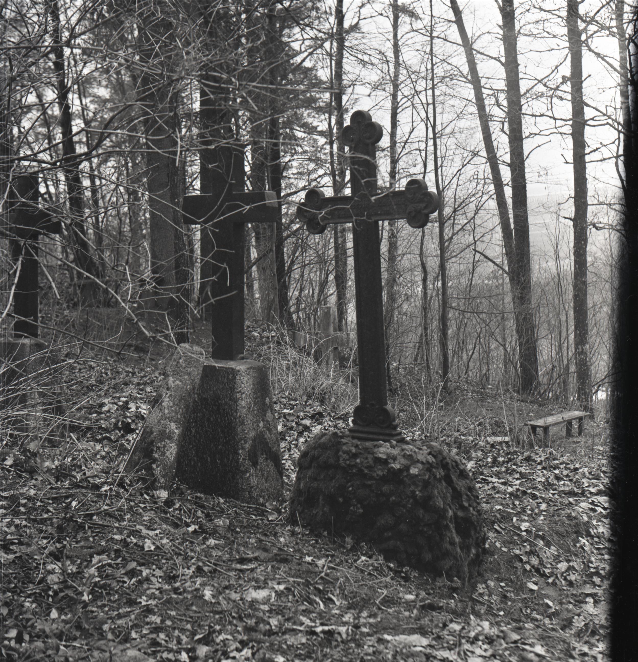 Madlienas kapi: 1905. gada revolucionāra K. Lasmaņa kaps. Skats uz kapa vietu no aizmugures. Pie kapa piemineklis - betona krusts uz paaugstinājuma. Blakus metāla krusts uz betona pamata.