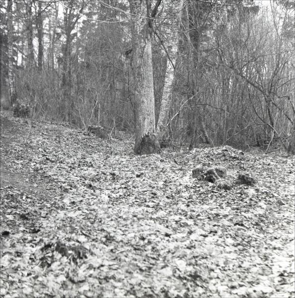 Blīdenes kapi: Revolucionāra Andersona kaps. Kapa vieta nav iezīmēta. Fonā redzami citi kapi un koki.