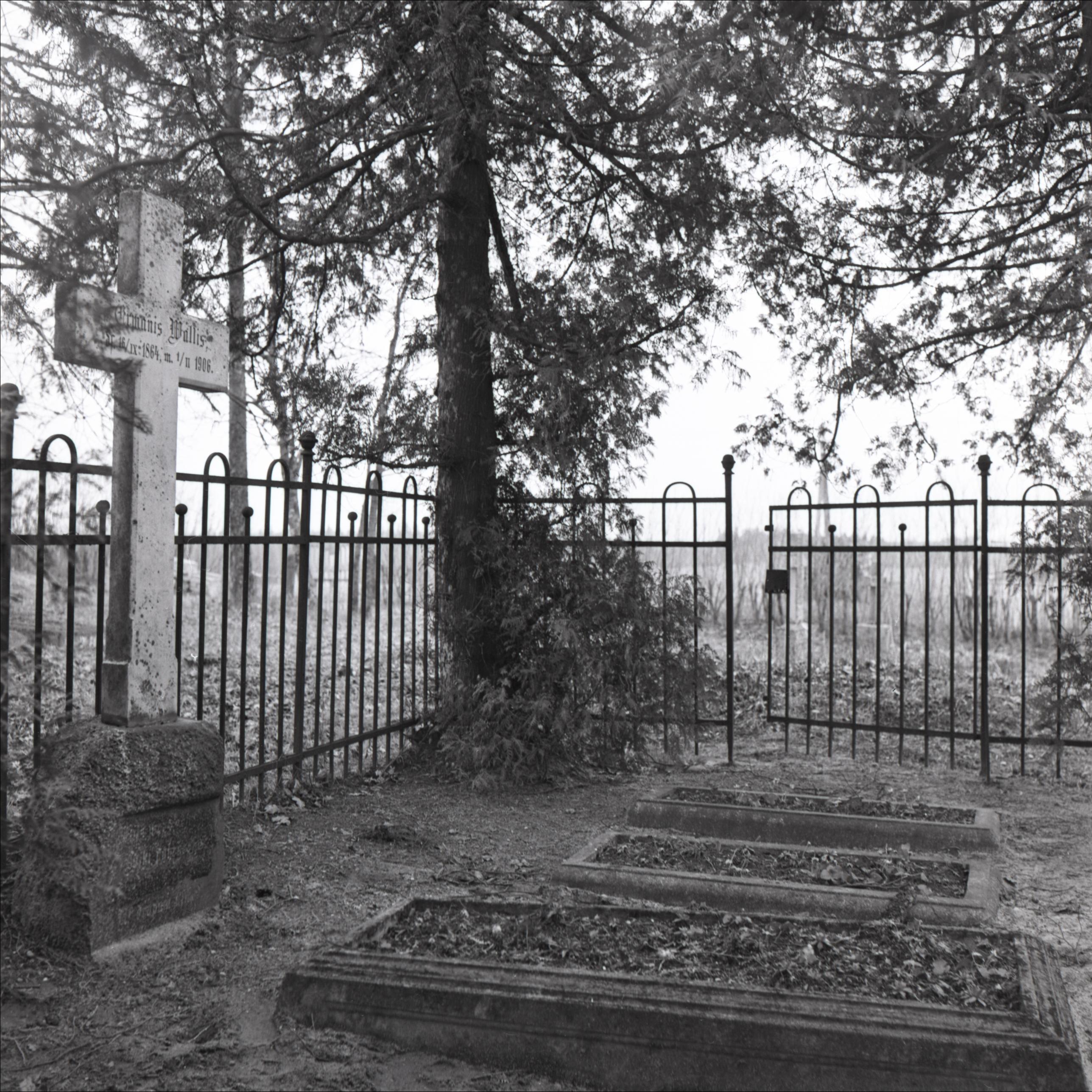 Aizpores kapi: Revolucionāra Ermaņa Valles kaps. Kapa vietas kopskats. Kapa vieta ar betona apmali. Blakus citas kapa vietas bez pieminekļiem. Apkārt metāla žogs ar vārtiņiem.