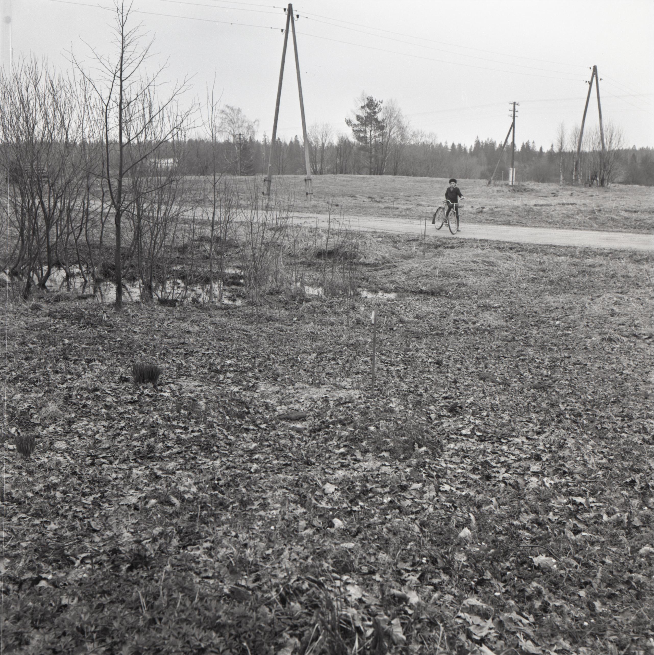 Aizpores kapi: Revolucionāra Kriša Pramalta kaps. Kaps bez apmales un piemiņas zīmes. Fonā ceļš, uz ceļa velosipēdists.