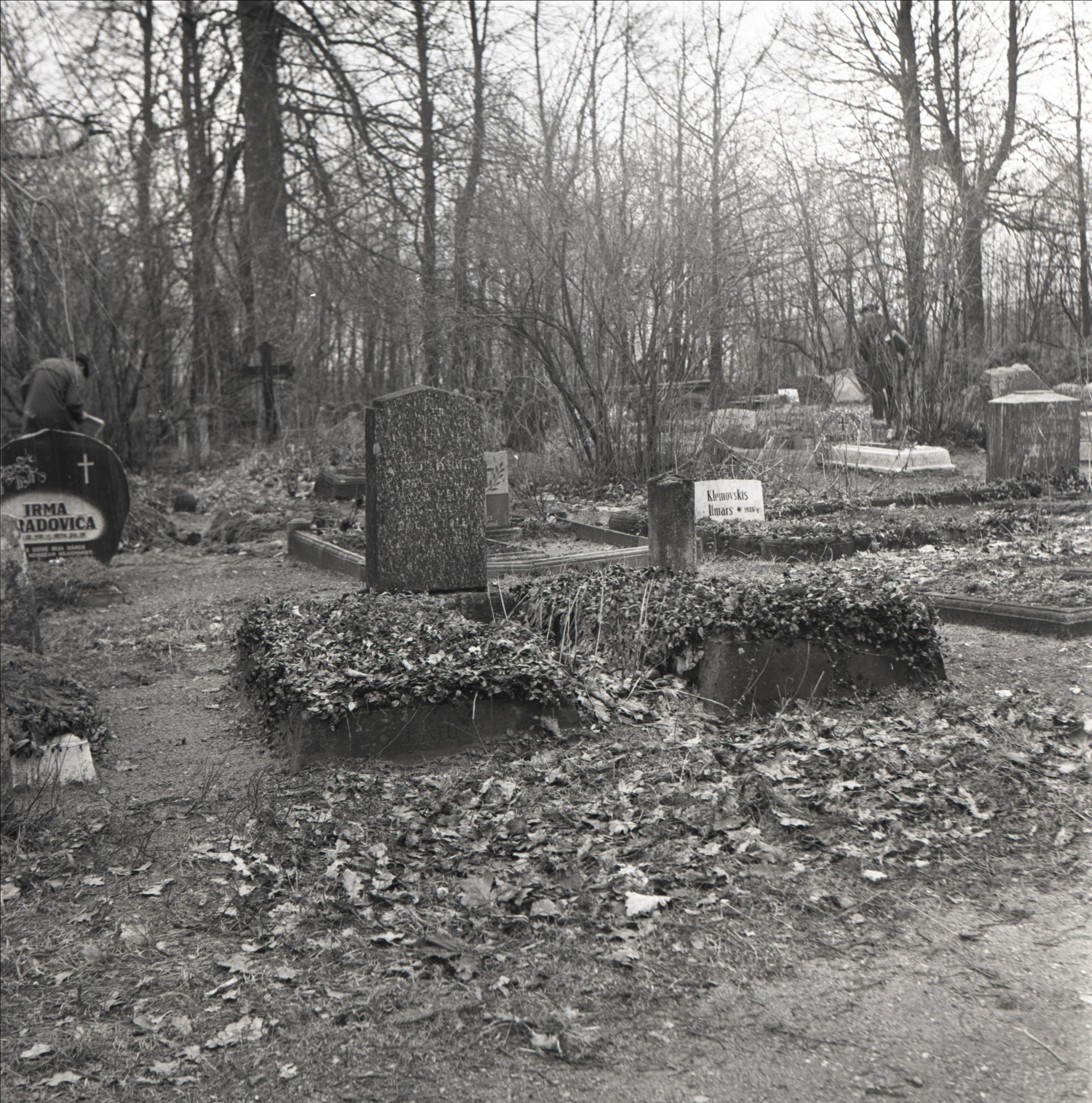 Vaiņodes kapsēta: Revolucionāra J. Krūzes kaps. Priekšplānā divas kapa kopas ar apmelēm un pieminekli. Fonā redzamas citas kapa kopas un pieminekļi.