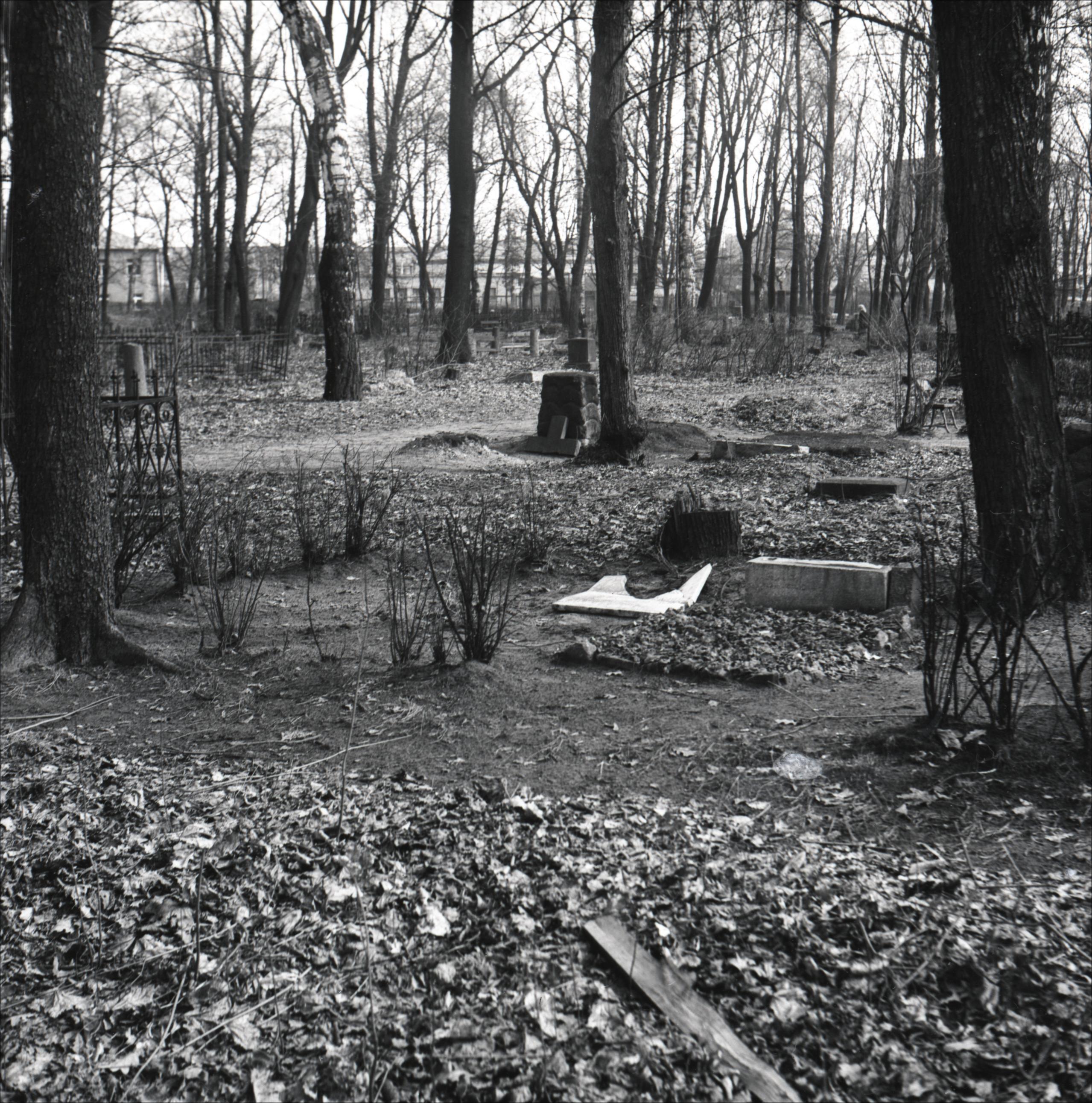 Lielie kapi: Aleksandra Dauges kaps. Kapa vietas kopskats. Kapa vieta ierobežota ar akmeņiem, pie kapa redzama kapa pieminekļa pamatne, kapa plāksne nolūzusi un nolikta blakus kapam. Fonā redzamas citas kapa vietas un ēkas.