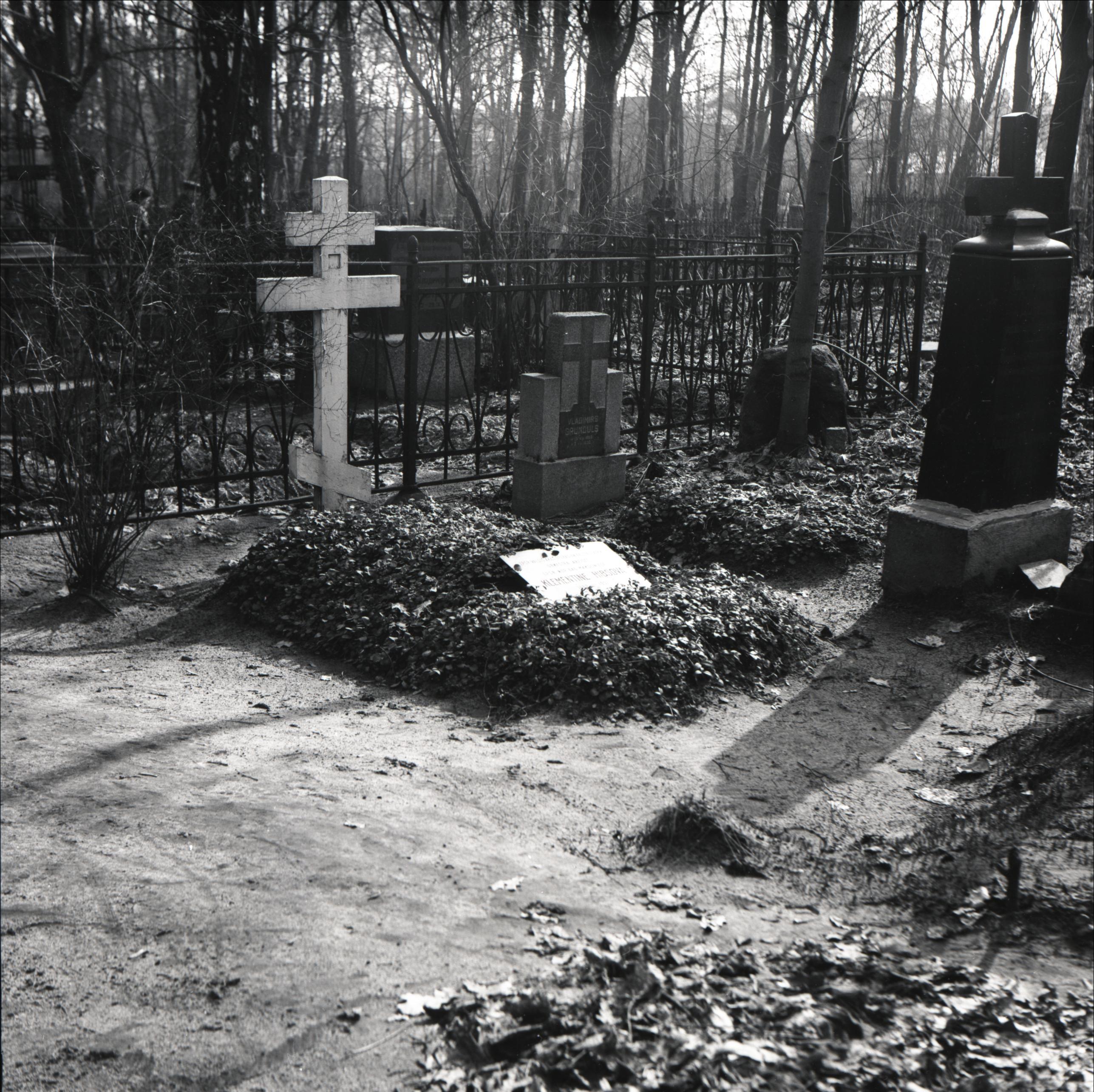Pokrova kapi: Klementīnes Hibsovas kaps. Kapa vietas kopskats. Uz kapa kopas atrodas kapa plāksne, kapa galā pareizticīgo krusts. Blakus citas kapa vietas un pieminekļi. Fonā redzams metāla žogs.