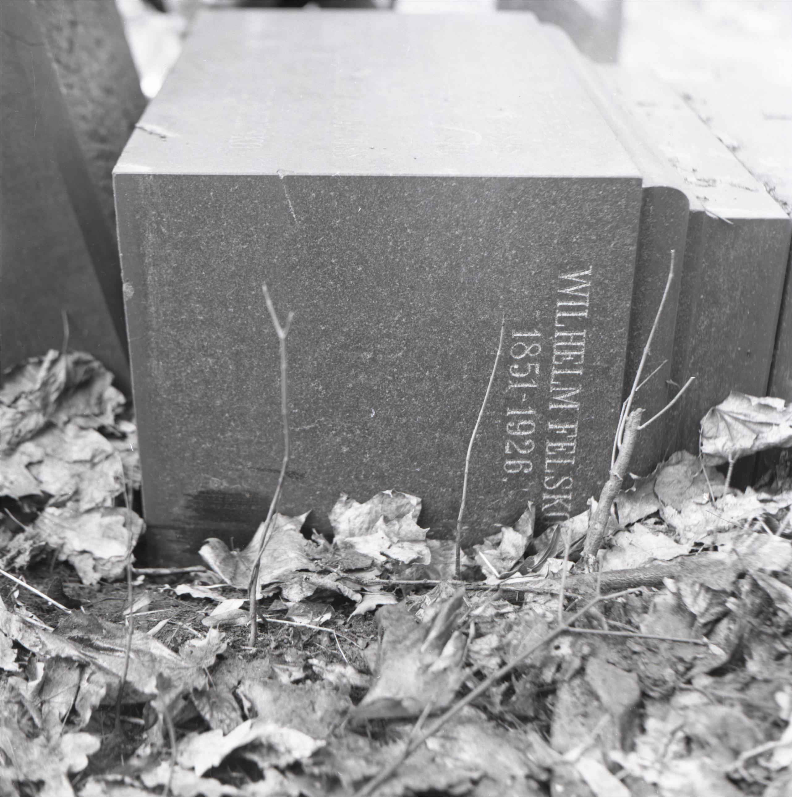 Lielie kapi: Arhitektu J. D. Felsko un K. J. Felsko kapi. Kapa pieminekļa lejasdaļas tuvplāns. Lejadaļā iegravēti Felsko ģimenes locekļu dzīves dati.