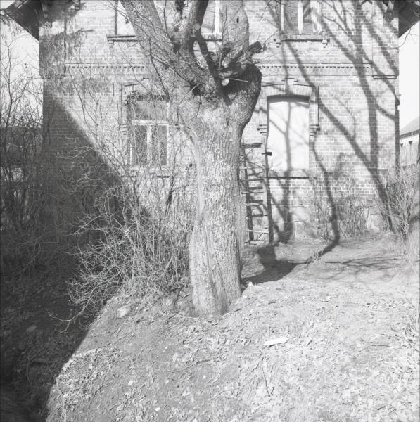 Ēka: Vieta, kur nošauti 1905. gada revolucionāri pie "Staburaga" mājām. Skats uz "Staburaga" māju sāna fasādi. Ēkai divi stāvi.