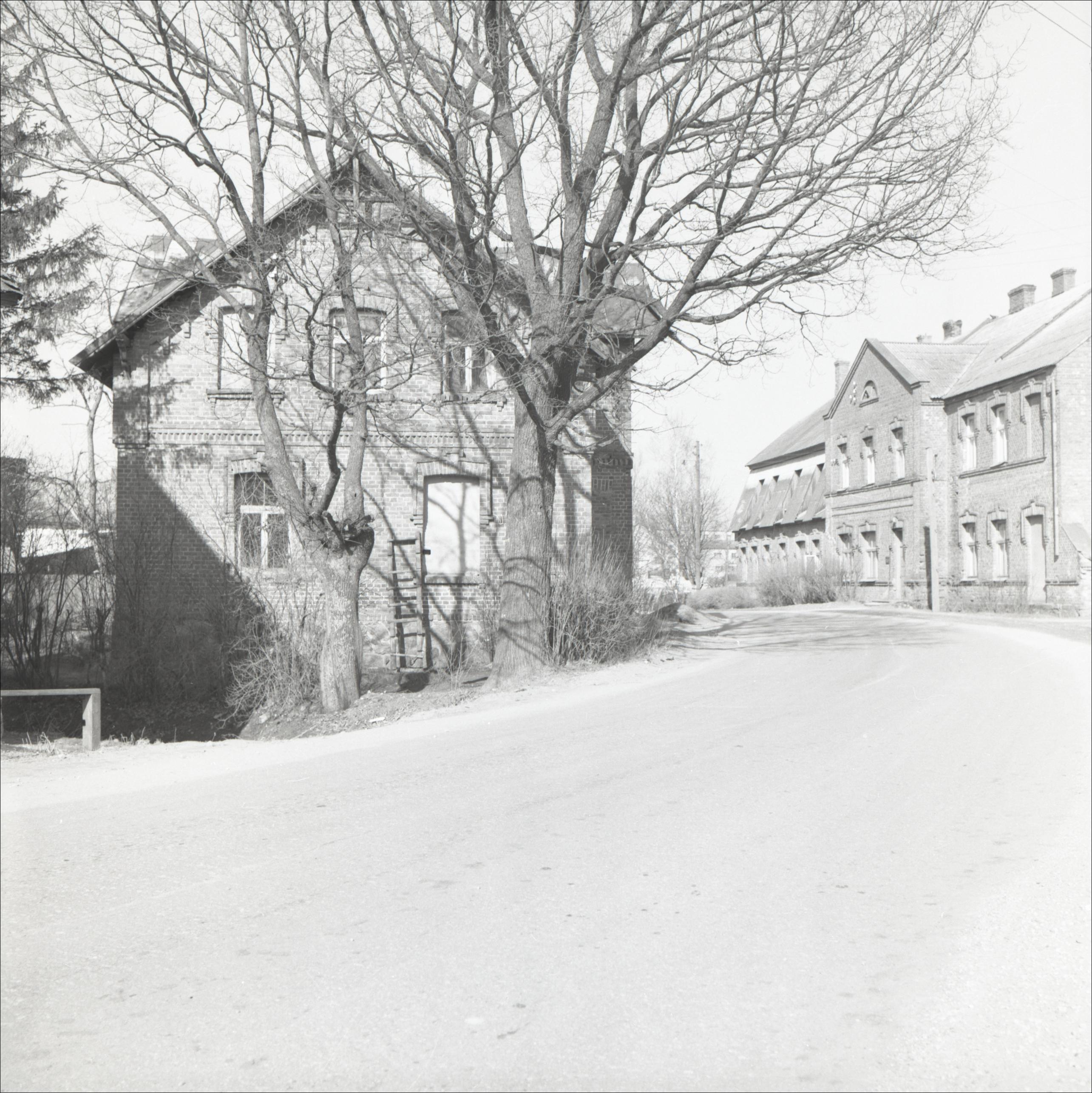 Ēka: Vieta, kur nošauti 1905. gada revolucionāri pie "Staburaga" mājām. Skats uz skatubara māju sāna fasādi, ēkai divi stāvi. Ēka atrodas ceļa malā, fonā redzama divstāvu ēka, kas atrodas otrā ielas pusē.