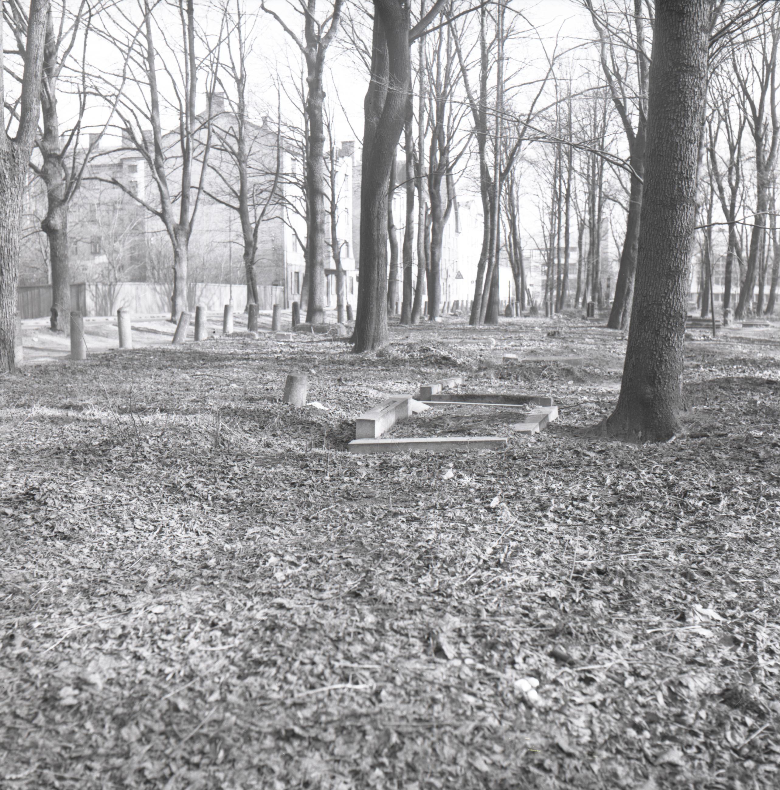 Lielie kapi: Vilijas Lambertes kaps. Kapa vietas kopskats. Kapa vietai apkārt apmale. Kapa vieta atrodas ielas malā, fonā redzamas daudzstāvu ēkas.