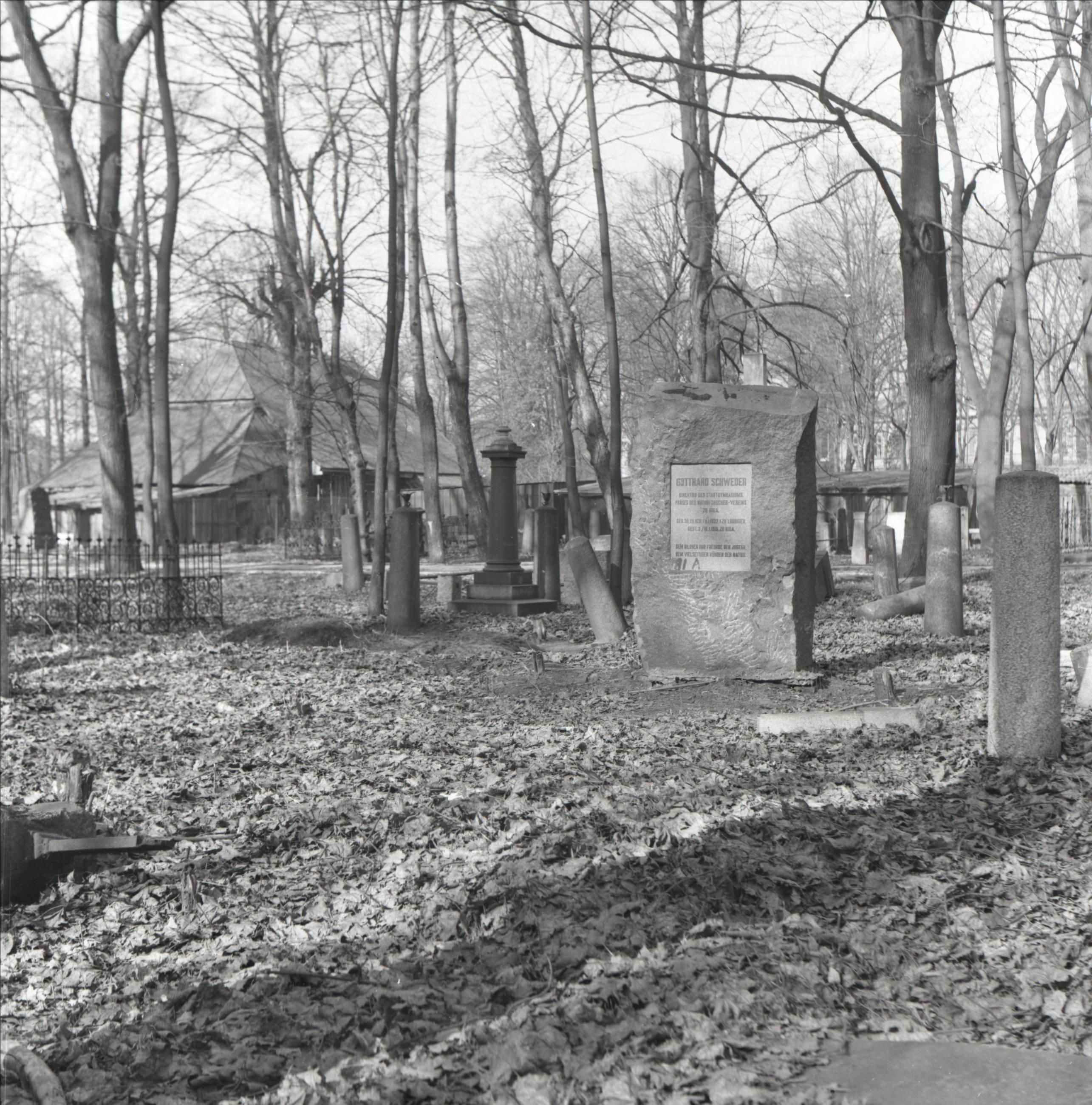 Lielie kapi: Gotharda Švēdera kaps. Kapa vietas kopskats. Apkārts kapa vietai citas kapa vietas un pieminekļi. Fonā redzama ēka.