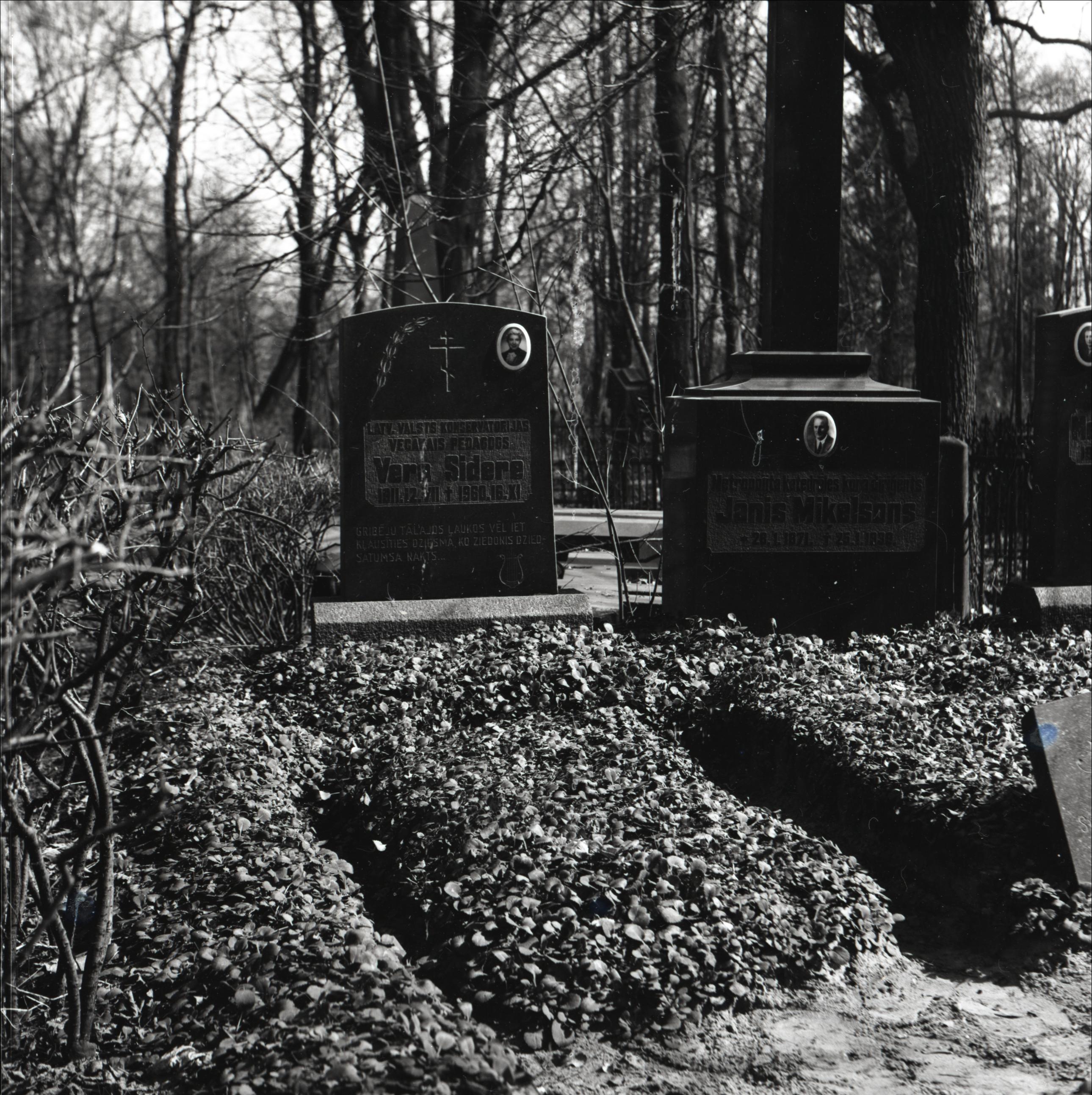 Pokrova kapi: Veras Sideres kaps. Kapa vietas tuvplāns. Blakus 2 kapa vietas un pieminekļi. Uz pieminekļa uzraksts latviešu valodā ar V. Sideres dzīves datiem. Pieminekļa augšdaļā iegravēta vārpa un pareizticīgo krusts. Pieminekļa augšējā labajā stūrī V. Sideres fotoportrets.