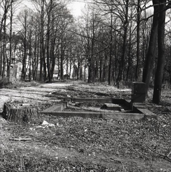 Lielie kapi: Profesora Karla Lovisa kaps. Kapa vietas kopskats. Ap kapa vetu betonēta apmale. No pieminekļa saglabājusies pamatne. Fonā redzamas citas kapa vietas un ēkas.