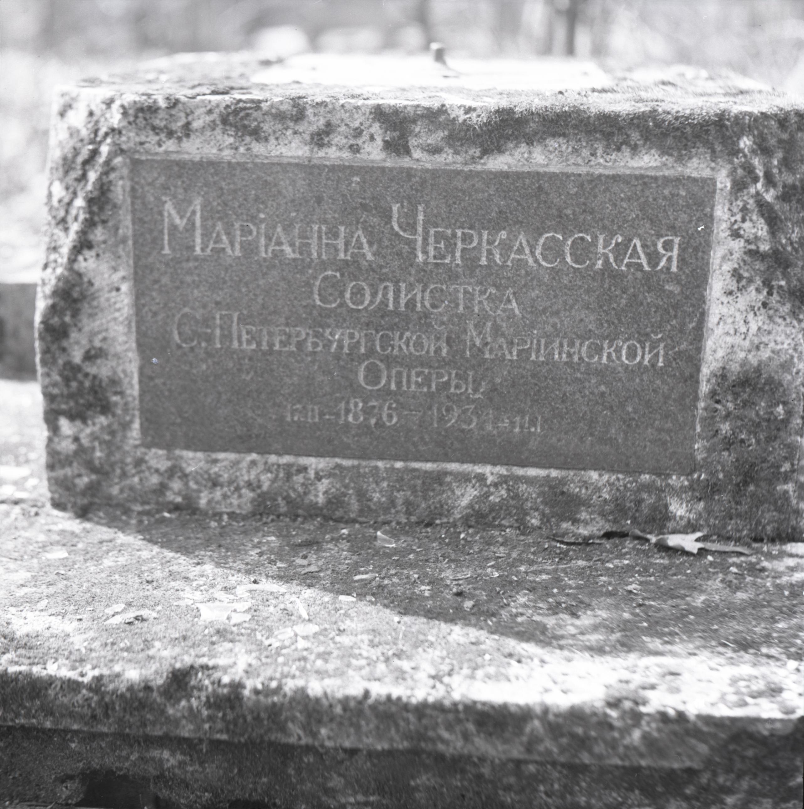 Pokrova kapi: Mariannas Čerkaskas kaps. Kapa pieminekļa pamatnestuvplāns. Uz tās uzraksts krievu valodā ar M. Čerkaskas dzīves datiem.
