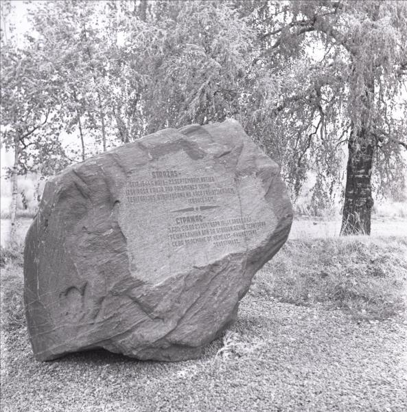 Piemiņas akmens Strožu (?) kaujas laukā: