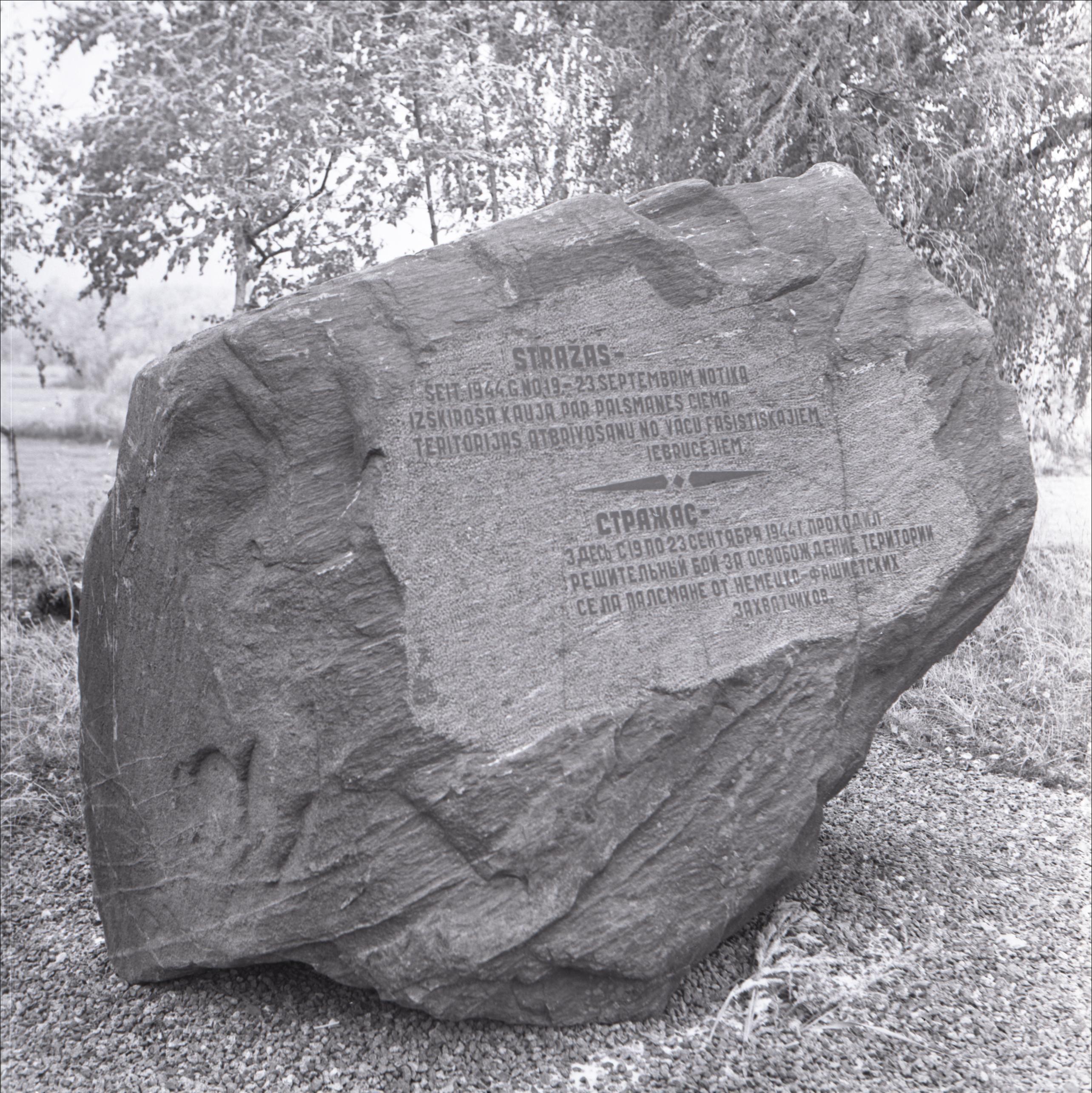 Piemiņas akmens Strožu (?) kaujas laukā: