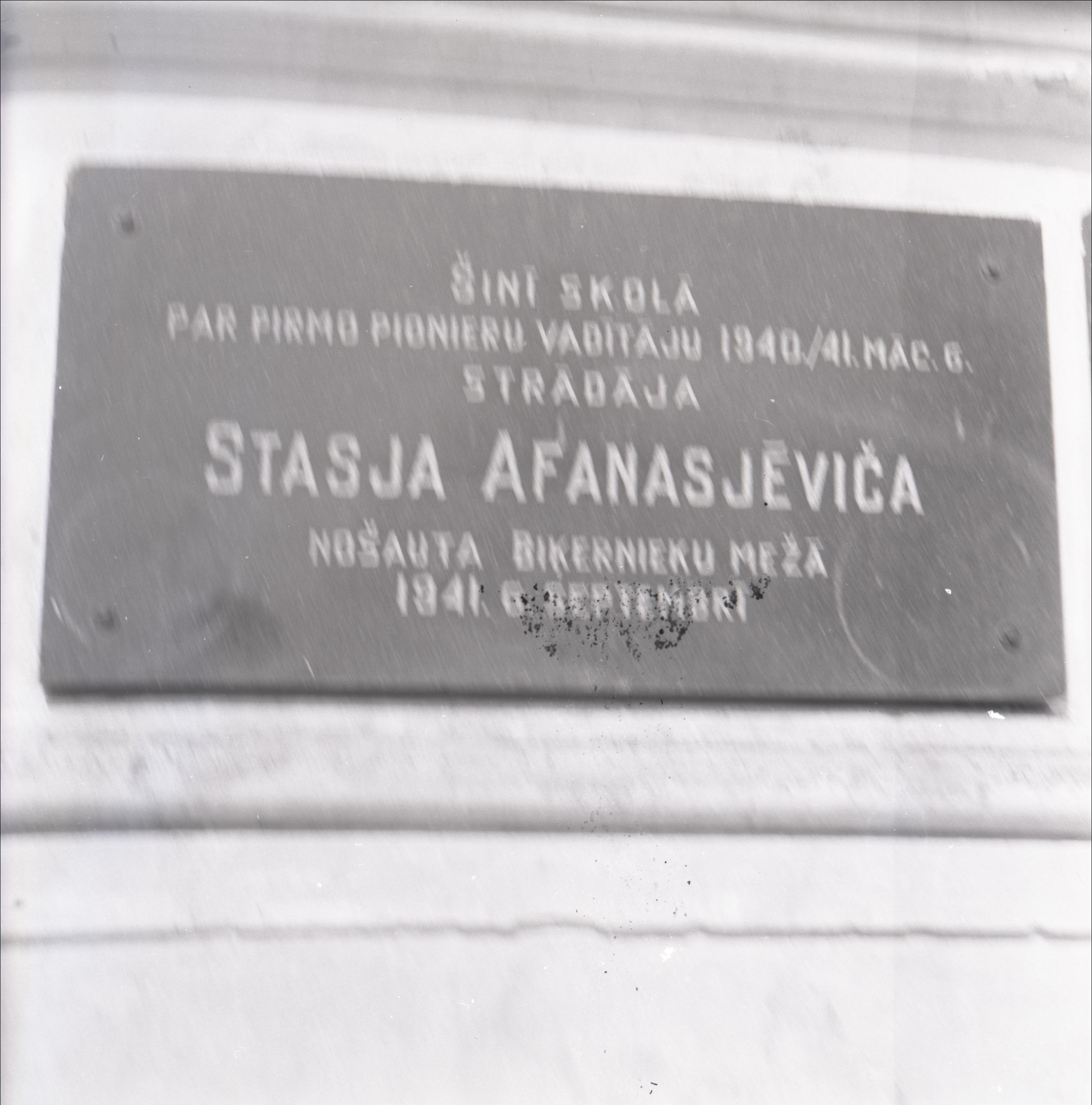 Ēka: Piemiņas plāksne Stasjai Afanasjēvičai
