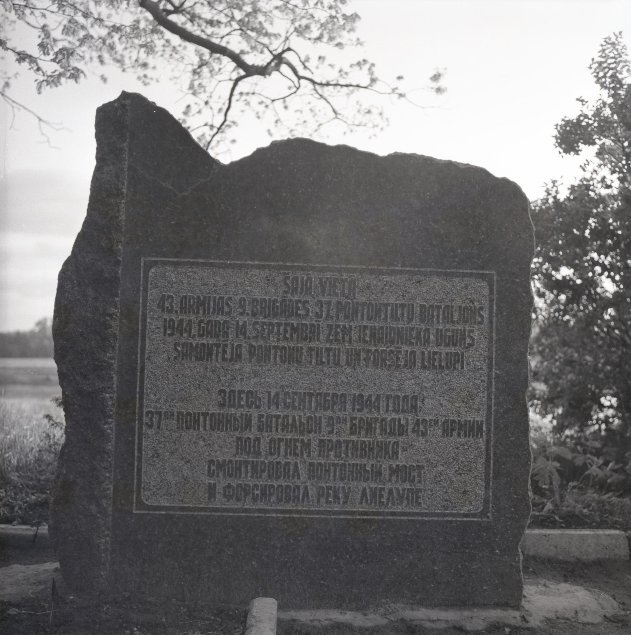 Piemiņas akmens 2. pasaules kara kaujai: Lielupes krastā