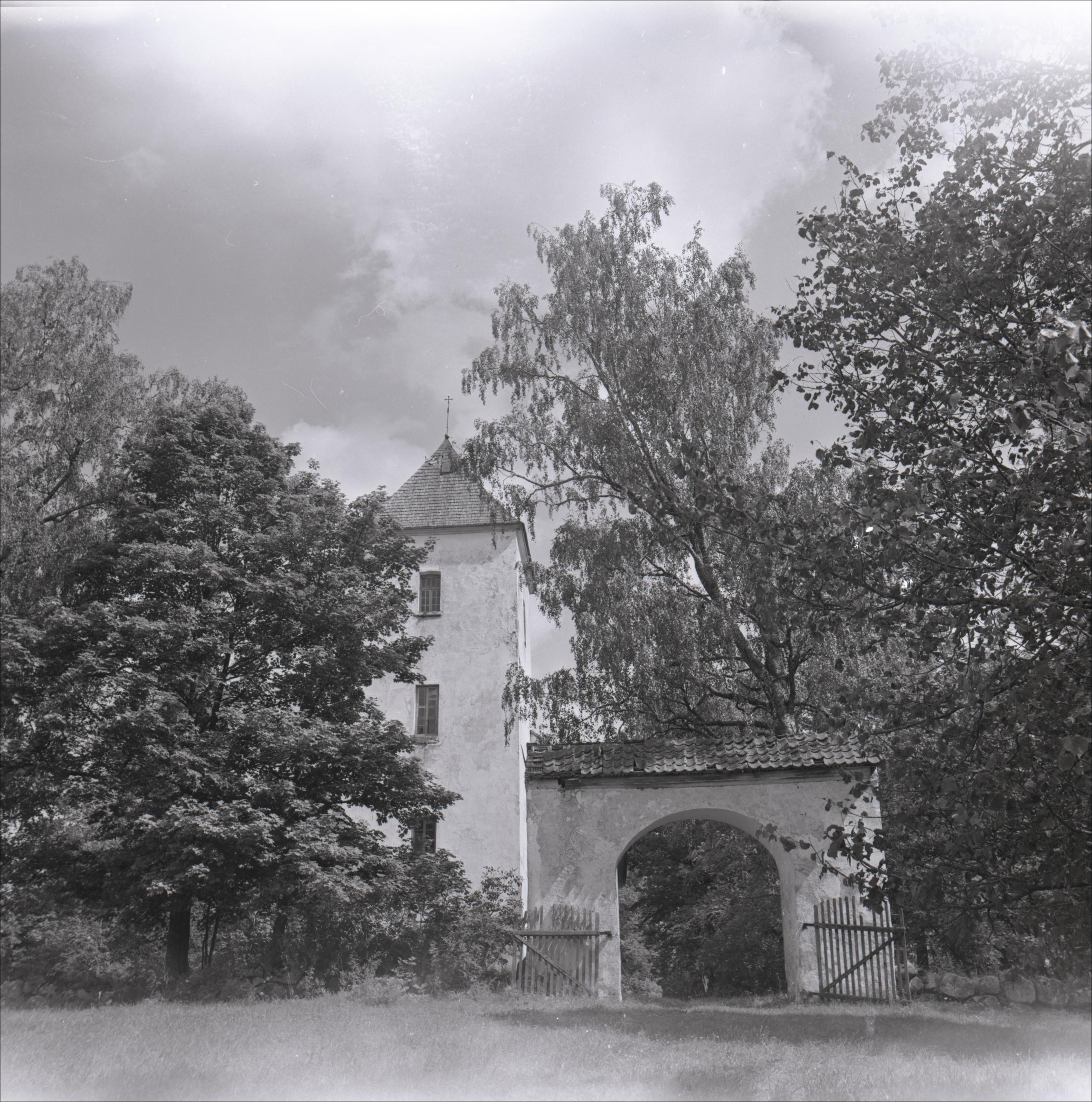 Sātu luterāņu baznīca ar žogu un vārtiem: Ārskats