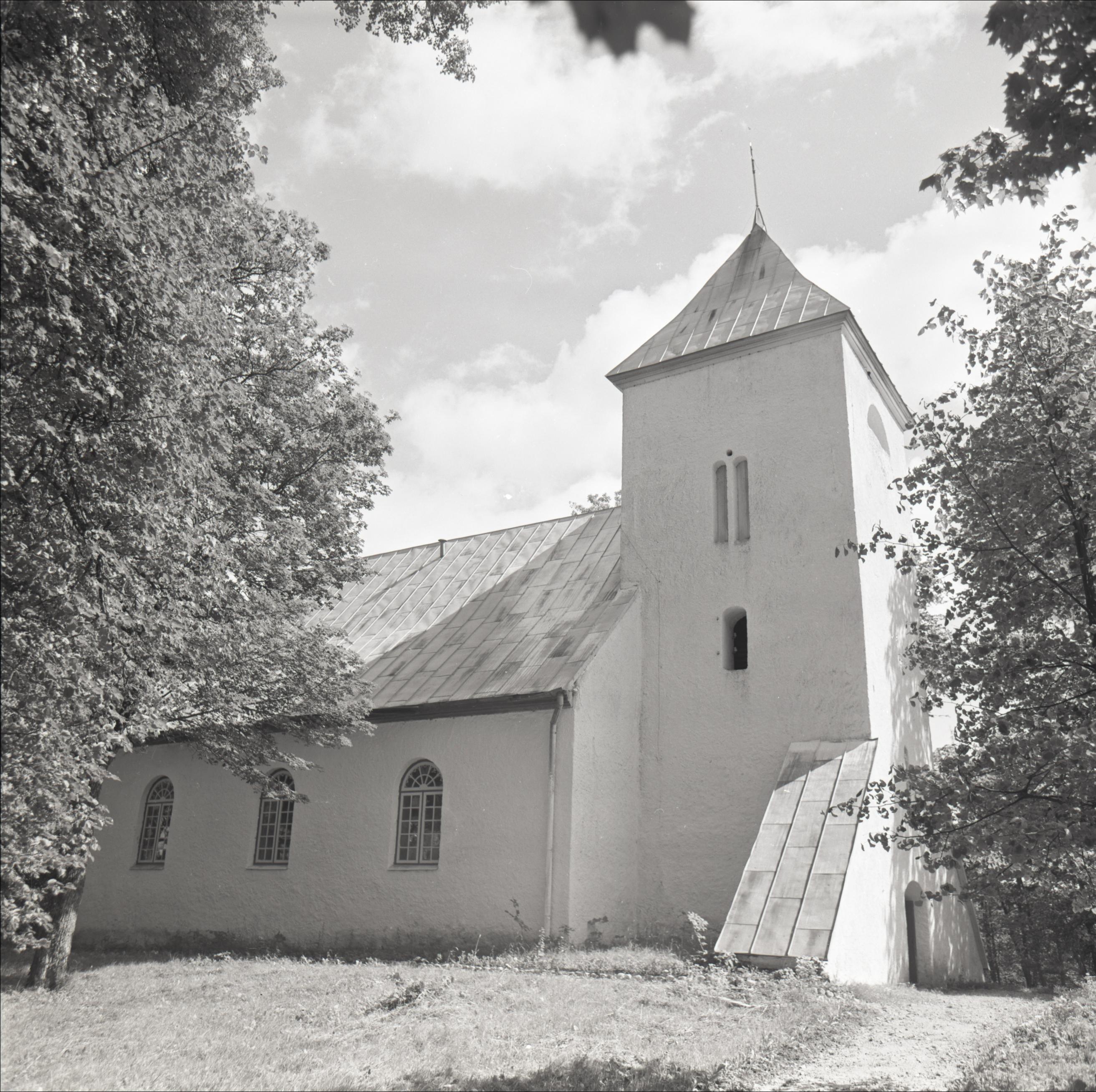 Sātu luterāņu baznīca ar žogu un vārtiem: Ārskats