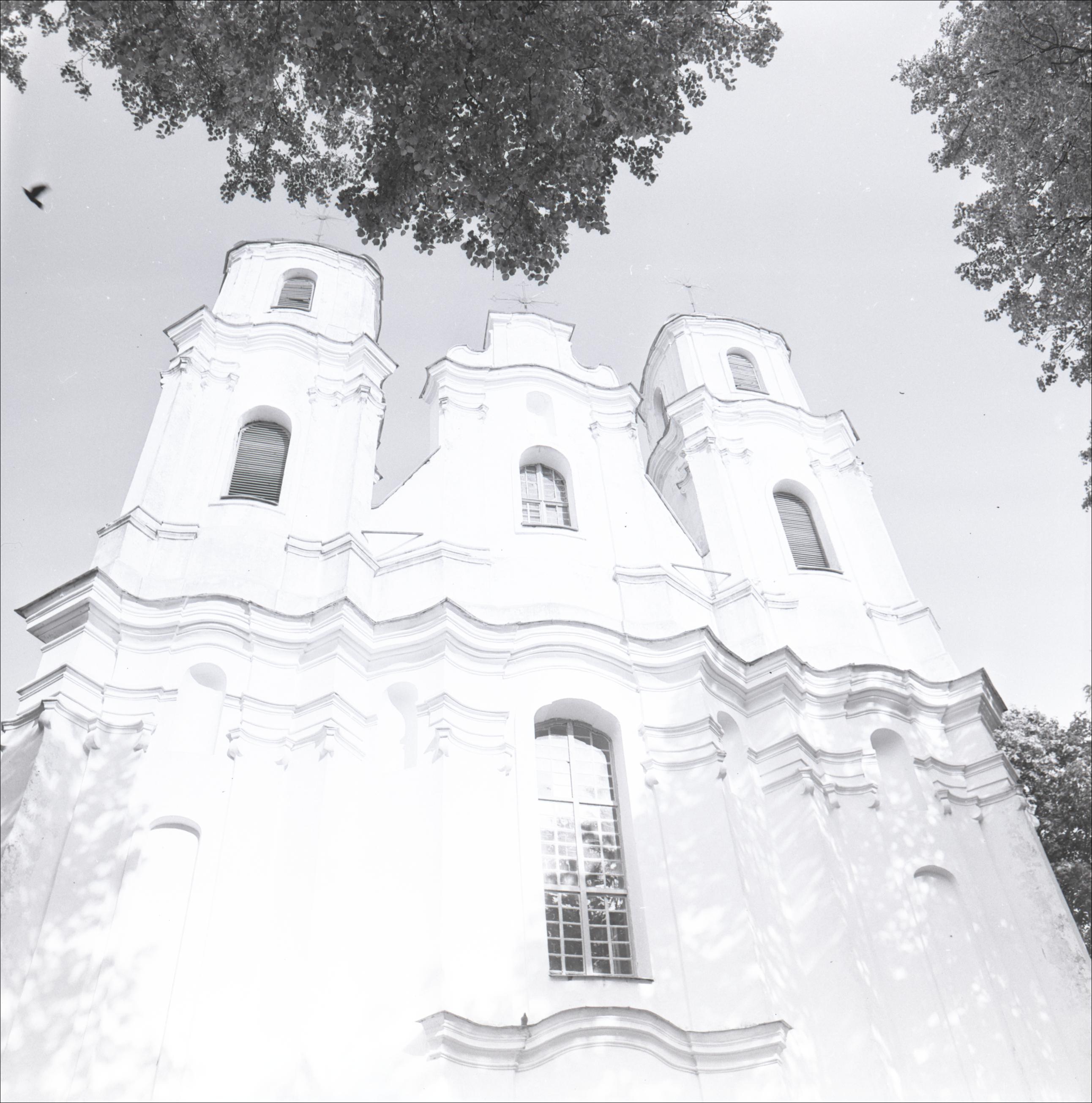 Piedrujas katoļu baznīca ar žogu un vārtiem: Ārskats
