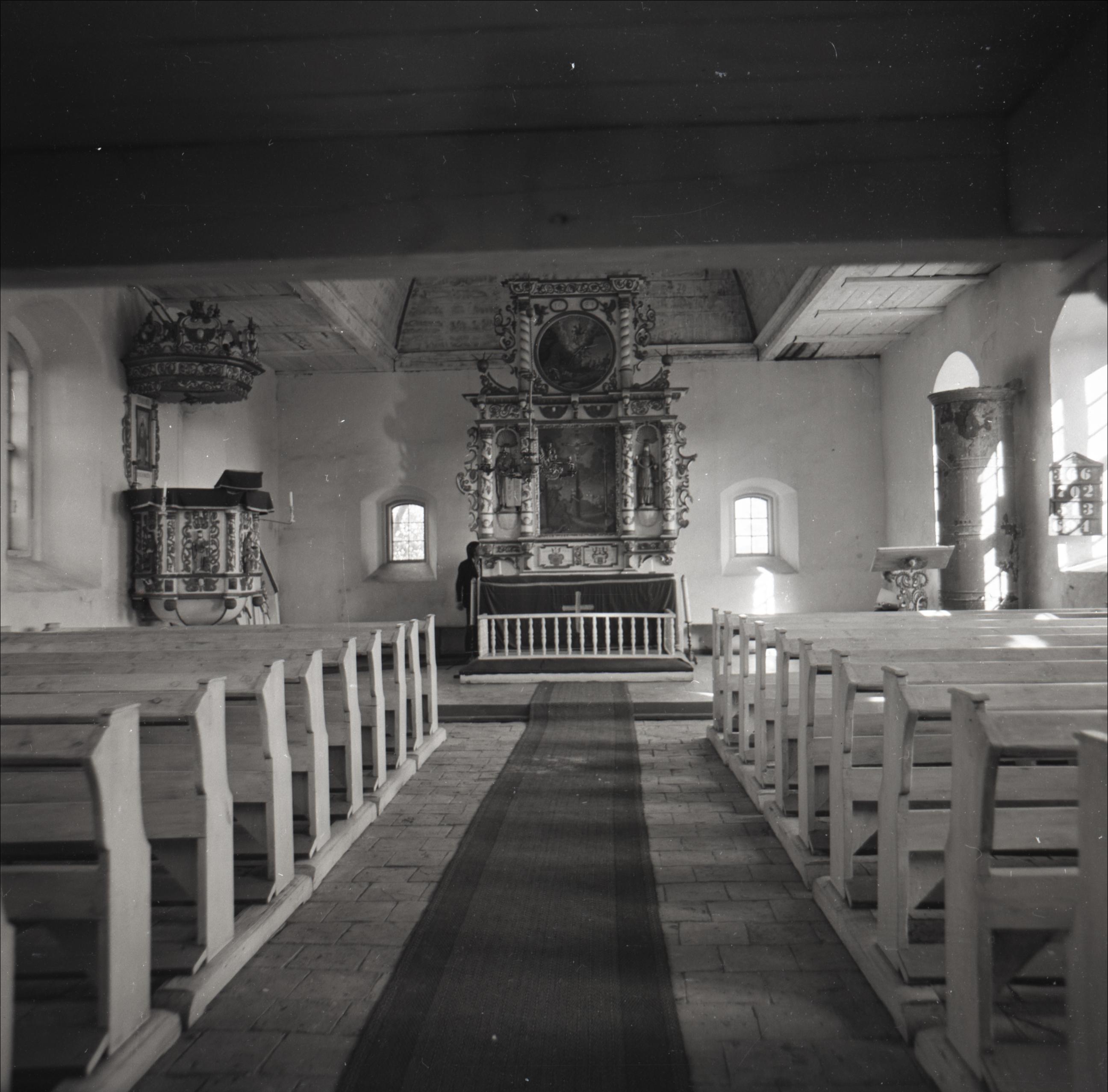 Ziemupes luterāņu baznīca ar žogu: Skats uz altāri