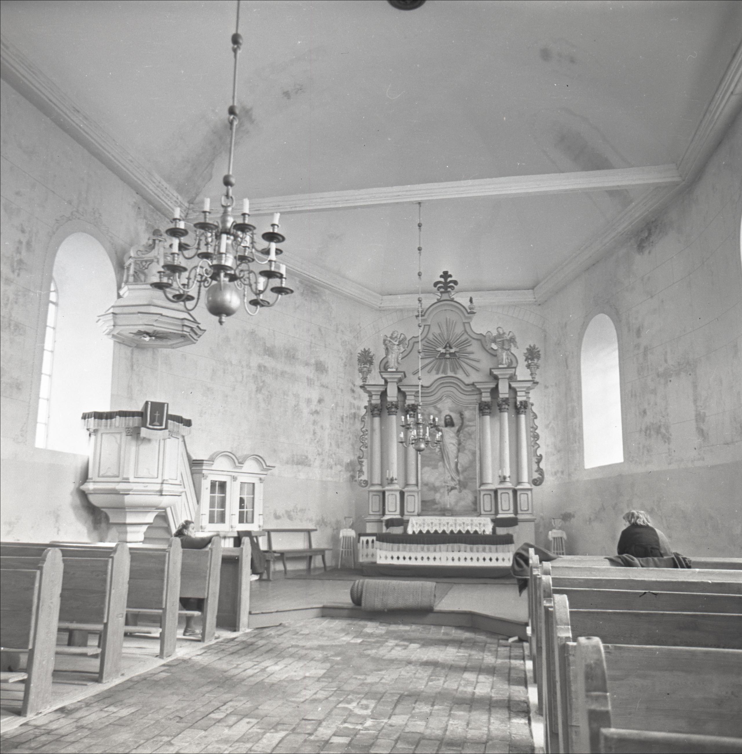 Stendes luterāņu baznīca un kapliča: Skats uz altāri