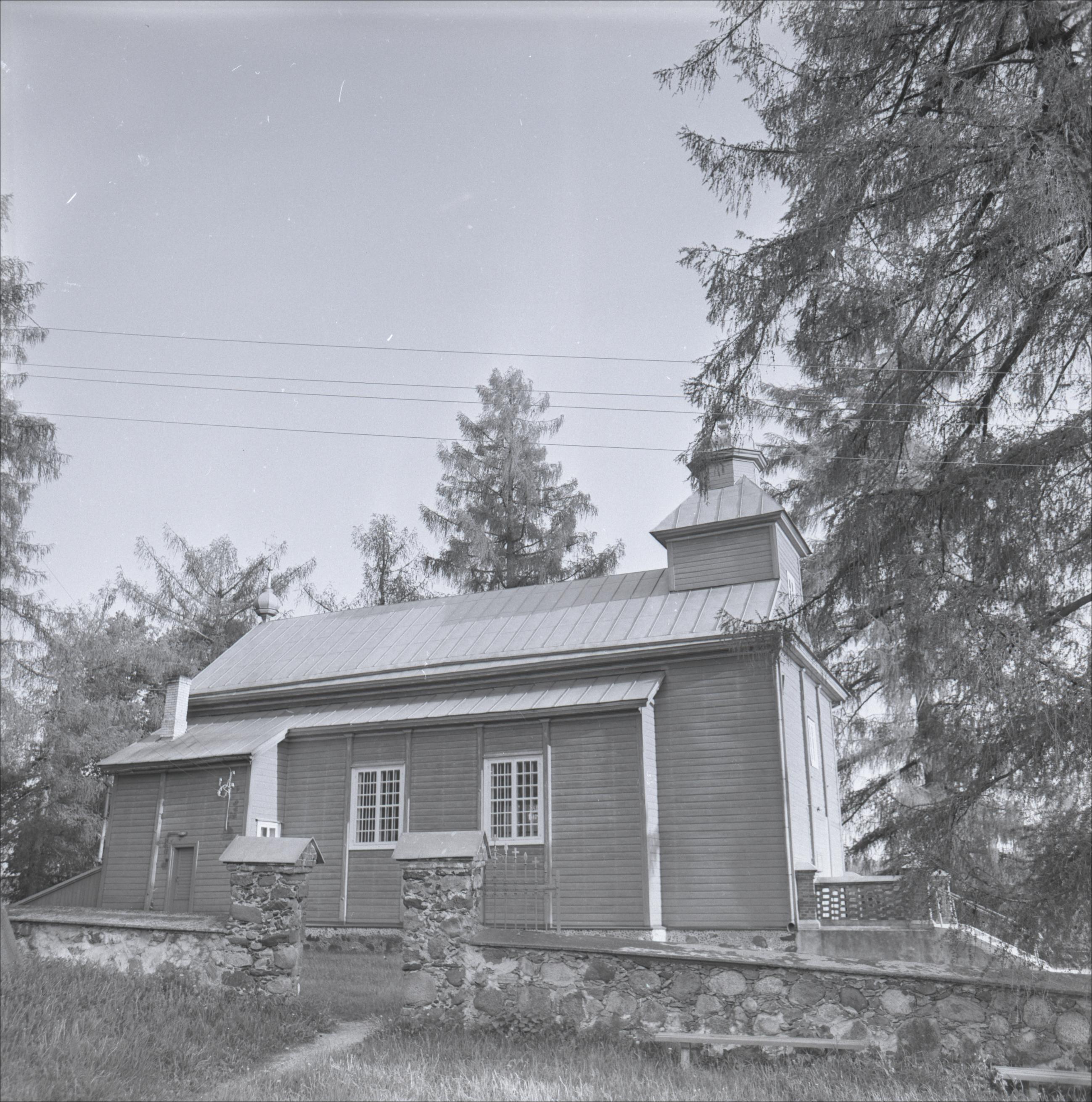 Indricas katoļu baznīca ar žogu un zvanu torni: Ārskats