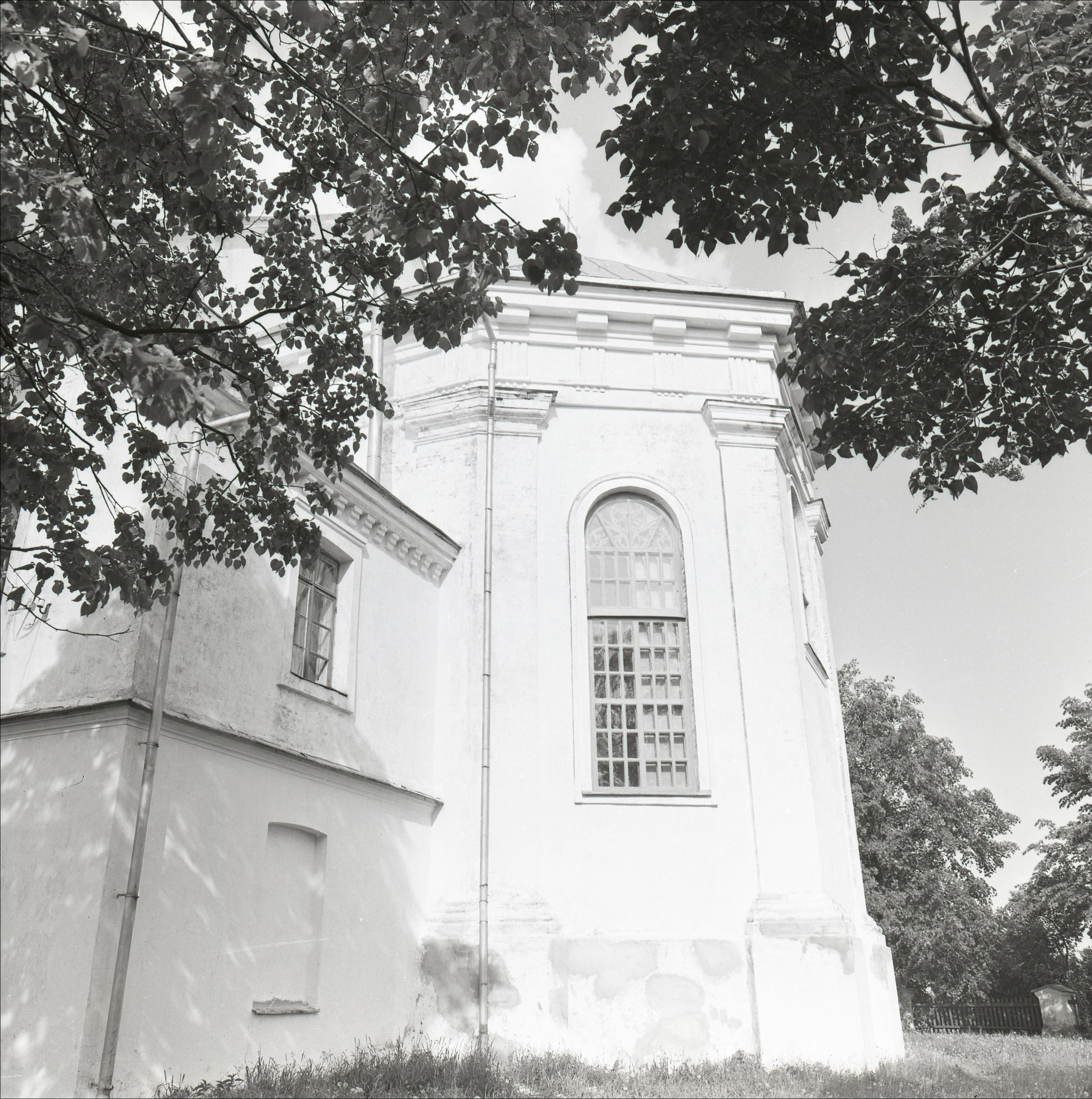 Landskoronas katoļu baznīca ar žogu un diviem zvanu torņiem: Ārskats