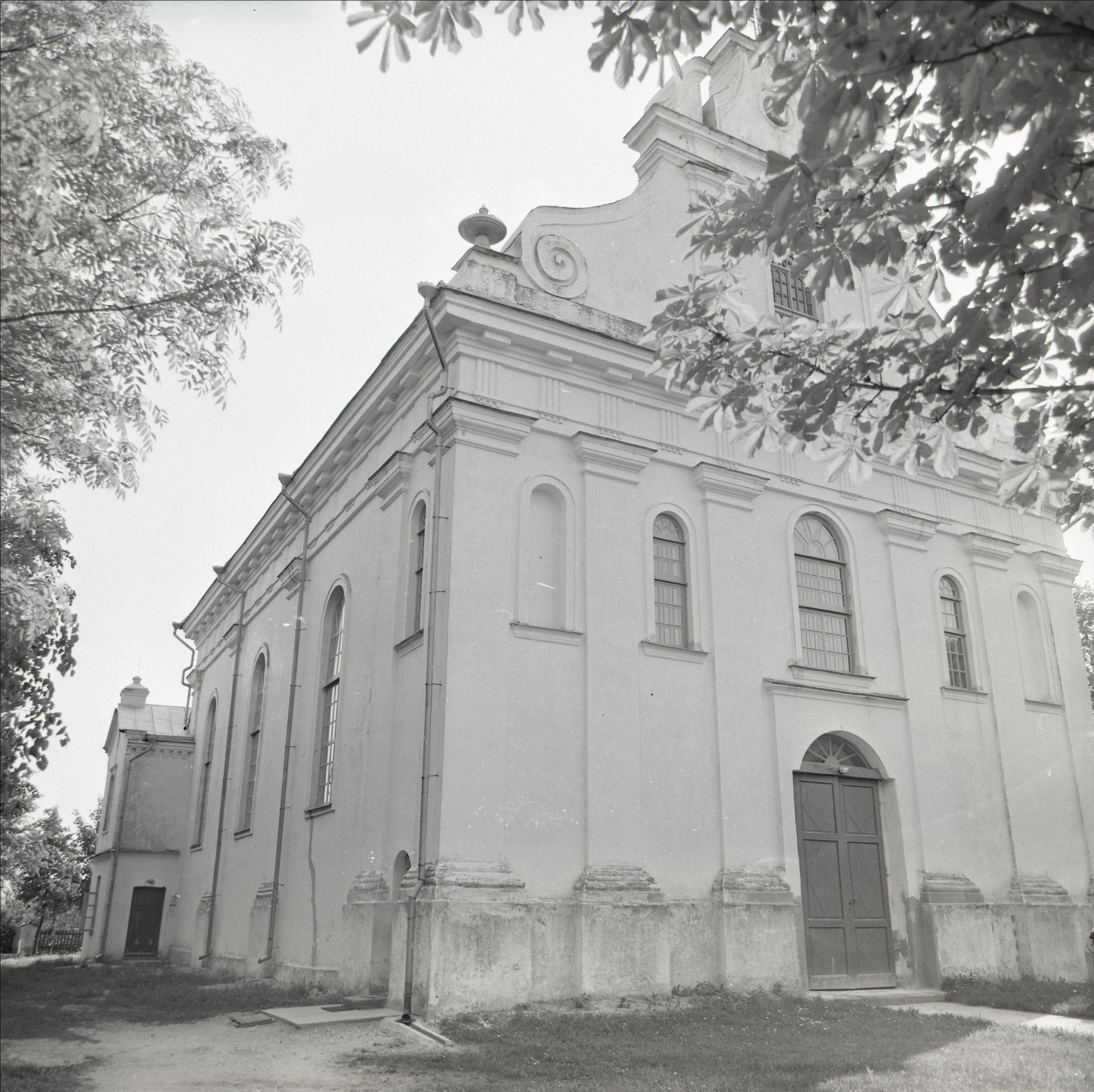 Landskoronas katoļu baznīca ar žogu un diviem zvanu torņiem: Ārskats