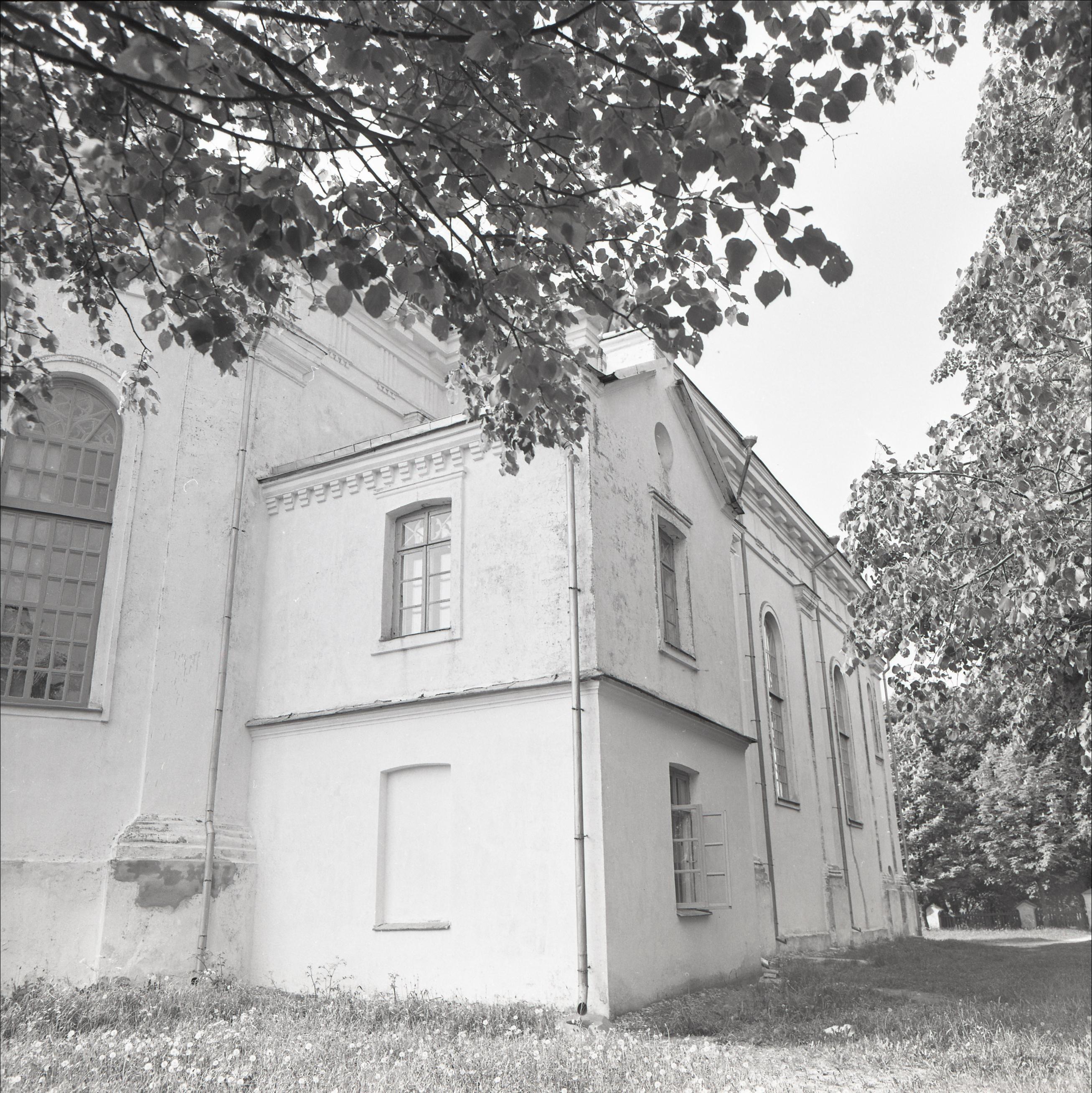 Landskoronas katoļu baznīca ar žogu un diviem zvanu torņiem: Ārskats