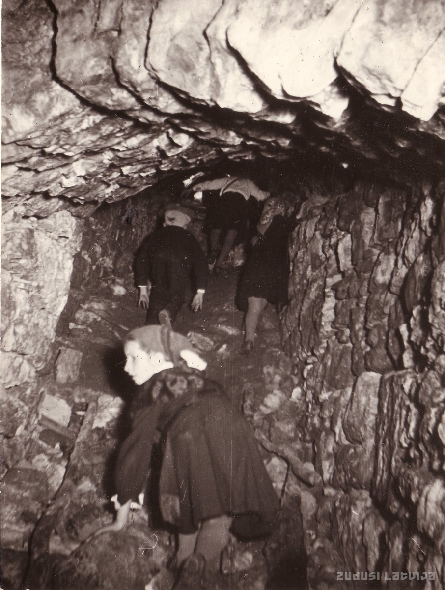 Sēlpils pilsdrupas. Apmēram 30 metrus garā pazemes eja. Skolotājs Aivars Bite ar saviem skolēniem ekskursijā Sēlpils pilskalnā 1961.gada 2. oktobrī