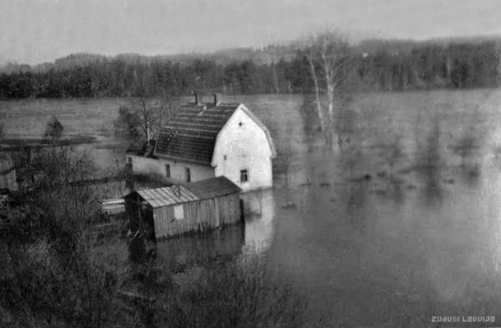Čulkstēnu mājas pie Oliņkalna. Nojauktas pirms appludināšanas sešdesmito gadu sākumā. Dūņuleja appludināta izveidojot Pļaviņu HES ūdenskrātuvi