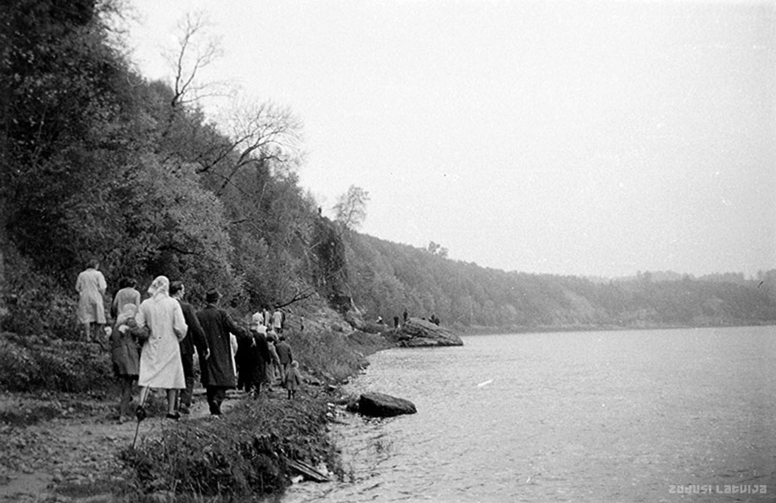 Ekskursanti no Kauguru pagasta Daugavas ielejā, netālu no Kokneses. 1962. gads.