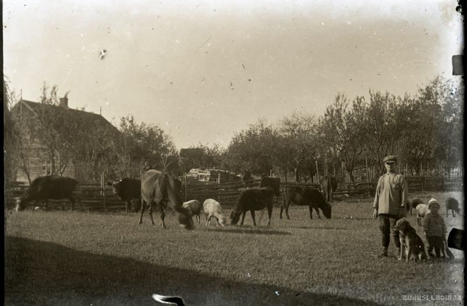 Lauku sēta Madonas novadā (iespējams Ceplinieki) ar lopu ganiņiem ap 191-. gadu.