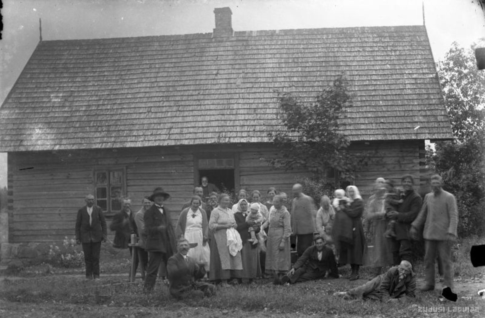 No labās puses otrais stāv māju saimnieks Andrejs Liepiņš ar dēlu Hariju klēpī. Vidū stāv Ieva Liepiņa. Kreisajā pusē ar lielu cepuri stāv Jānis Barbans, bet atstatus no kreisās puses stāv Jānis Liepiņš.