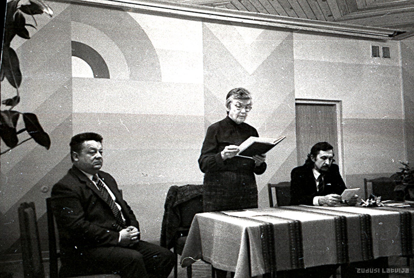No kreisās: kolhoza "Kaugurieši" priekšsēdētājs Gunārs Freimanis, aktrise Lidija Freimane, laikraksta “ Skolotāju Avīze” redaktors, pedagogs, žurnālists, dzejnieks Felikss Zvaigznons.