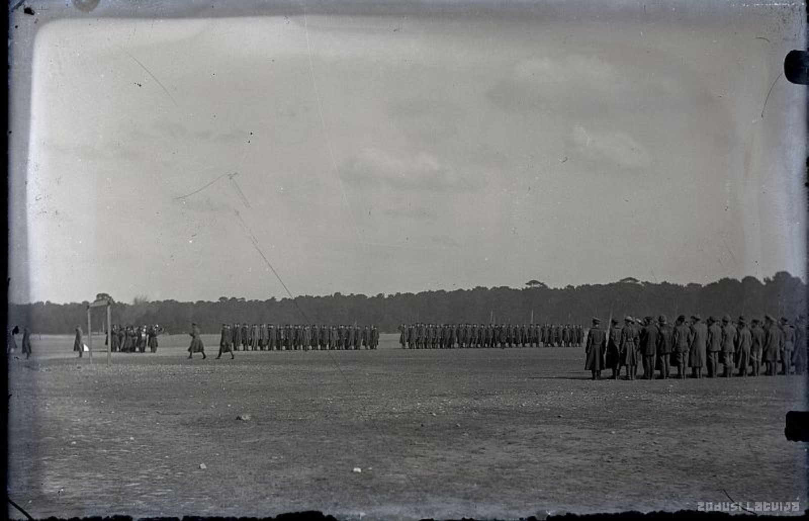 Latvijas armijas Zemgales artilērijas pulka karavīri ierindā Karaostā Liepājā. 1920. gada mācībās.