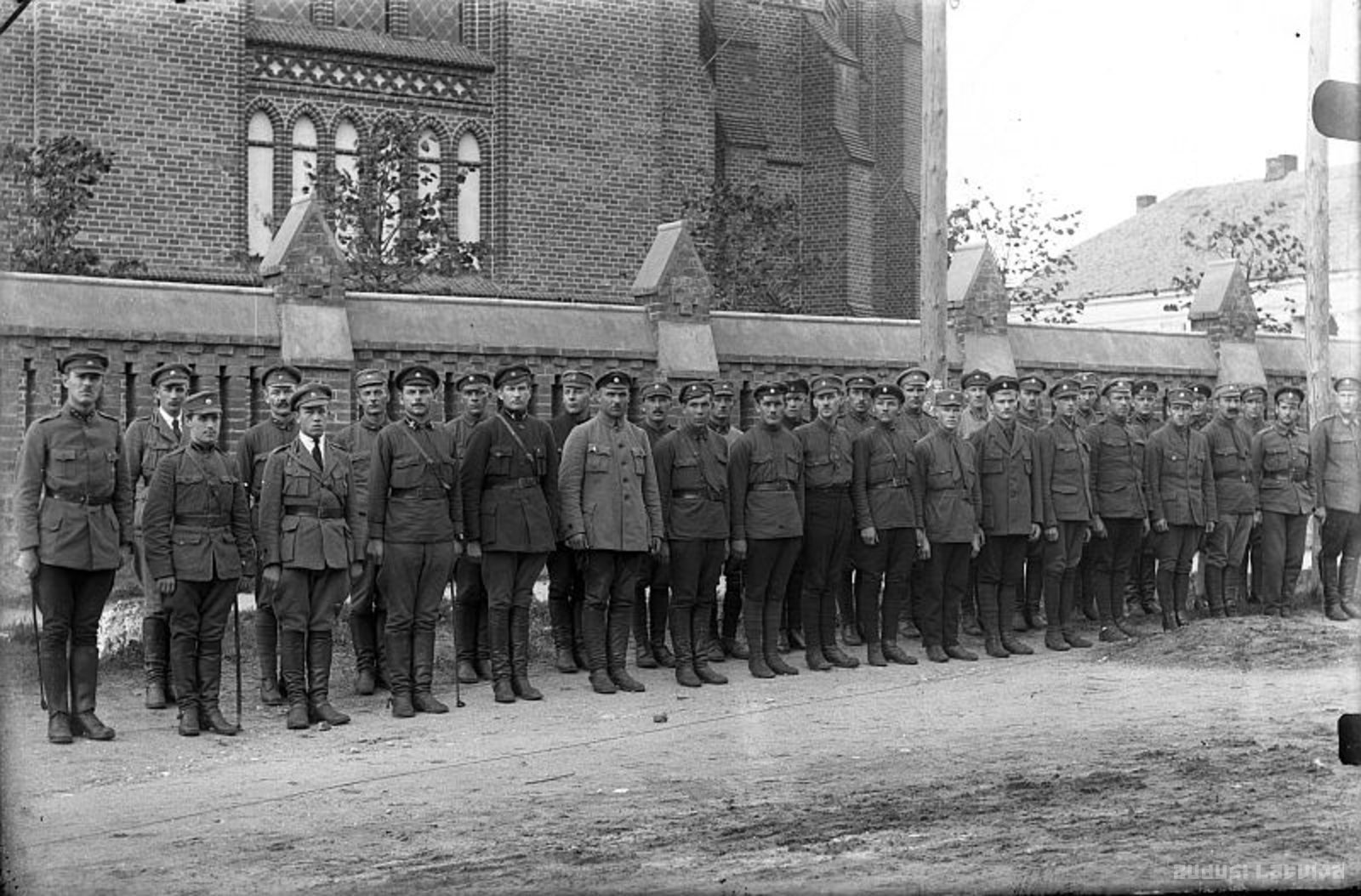 Latvijas armijas Zemgales artilērijas pulks ierindā uz Liepājas gatves (mūsdienu Vītauta) gatves Palangā pie Vissvētākās Jaunavas Marijas katoļu baznīcas 1920. gadā. Latvijas armija Palangā pildīja robežsardzes dienestu uz Latvijas- Vācijas robežas.