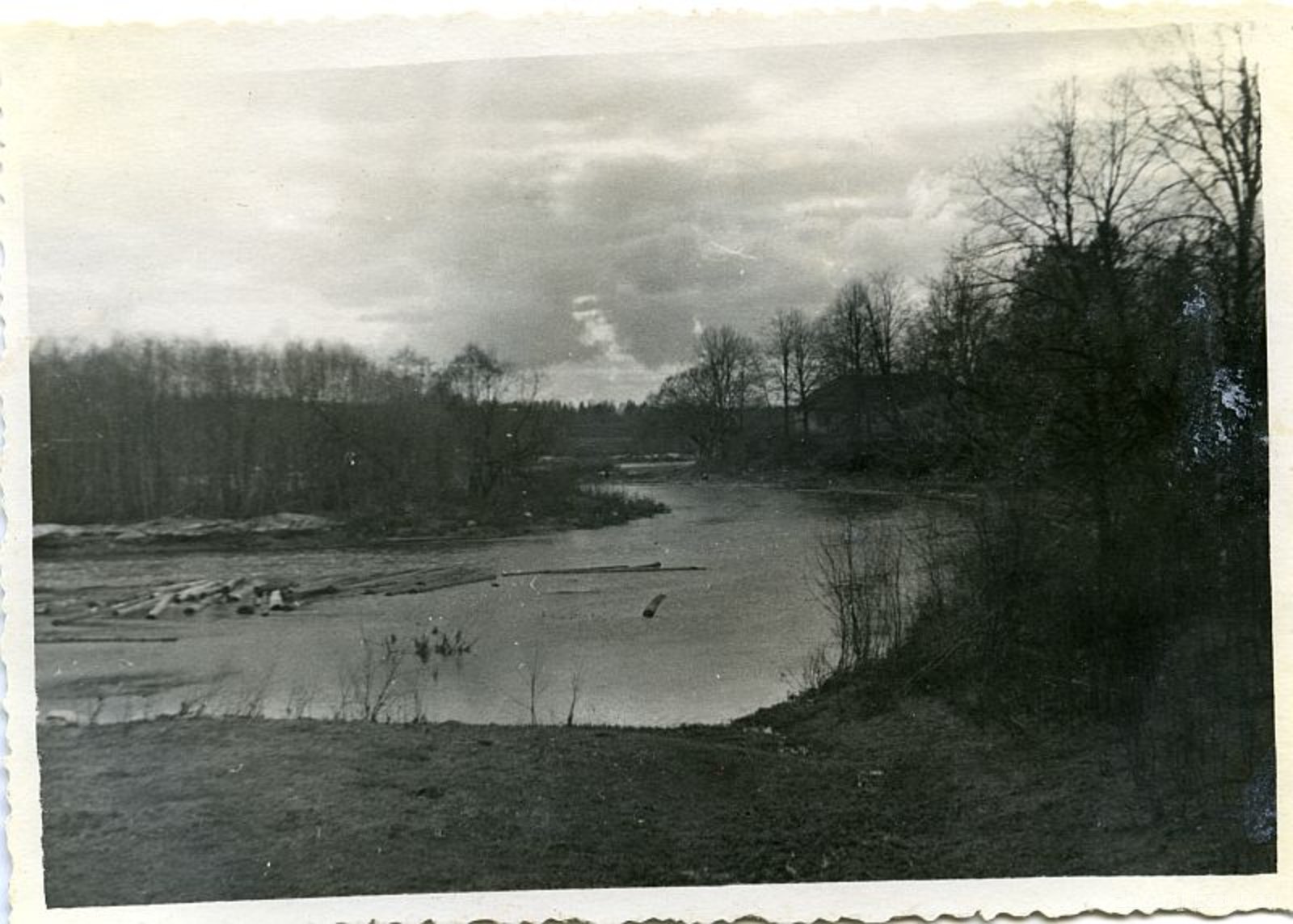 Kokmateriālu pludināšana Dienvidsusējas upē pie Ērberģes. pludināšana izbeigta 20. gadsimta 60. gados