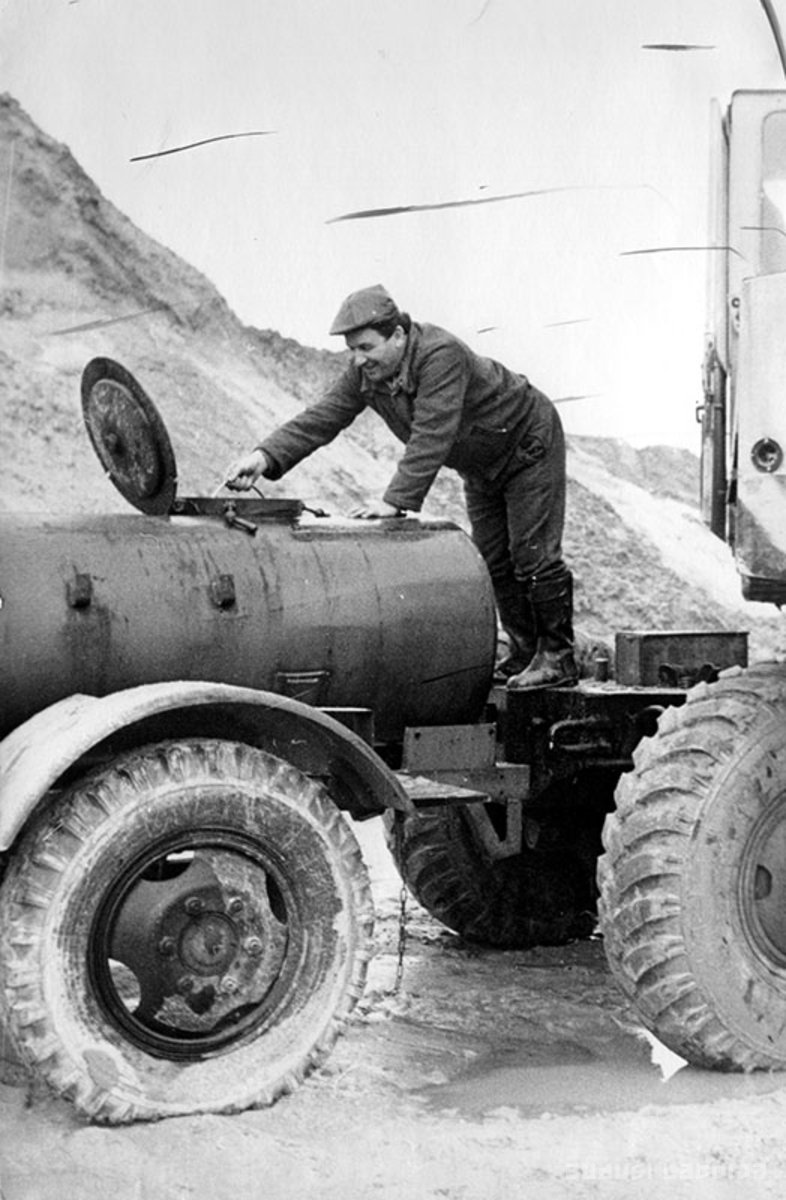 Uzraksts uz fotogrāfijas aizmugures: "Zvārtes karjers. Ekskavatorists Fomins. 1979. g. aprīlis."