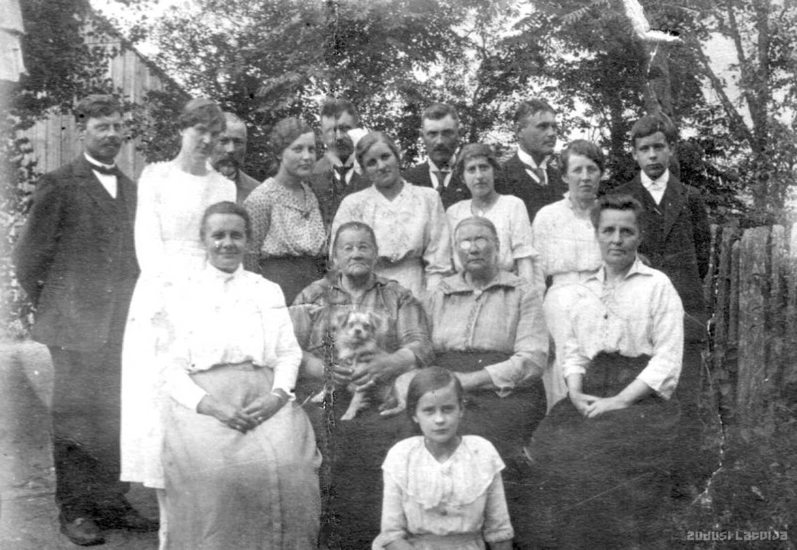No kreisās pirmais stāv Pastendes "Krauķu" saimnieks Fricis Freimanis