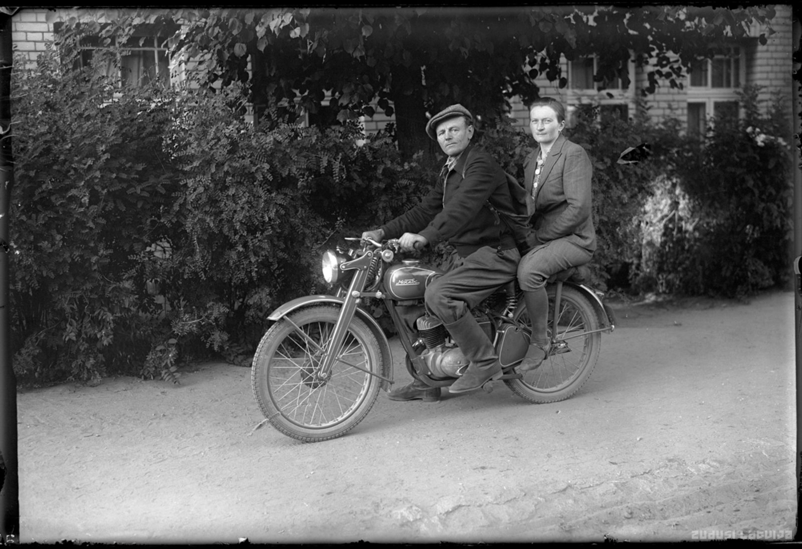 Vīrietis un sieviete uz motocikla